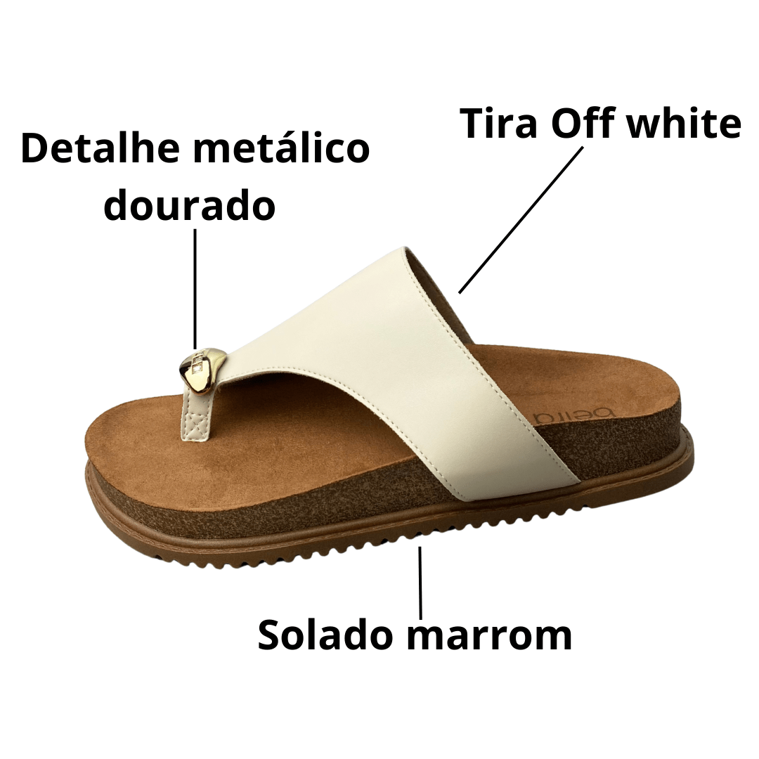 Birken Beira Rio Feminina Branco Off com Ferragem Dourada