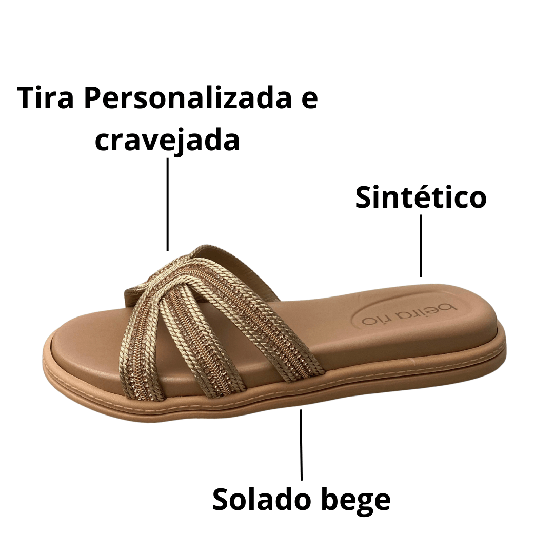 Birken Beira Rio Feminina Ouro Rosado Cravejado