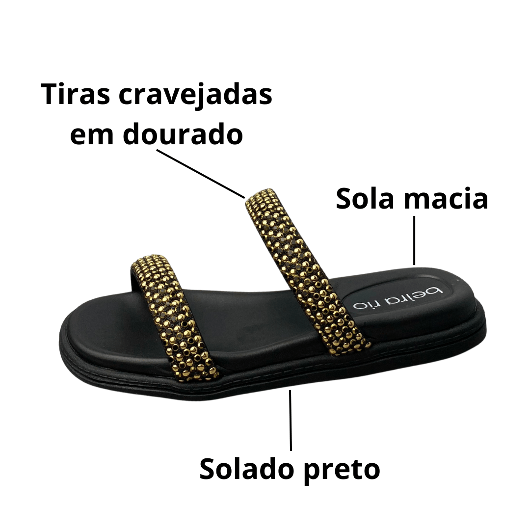 Birken Beira Rio Feminina Preto Dourado