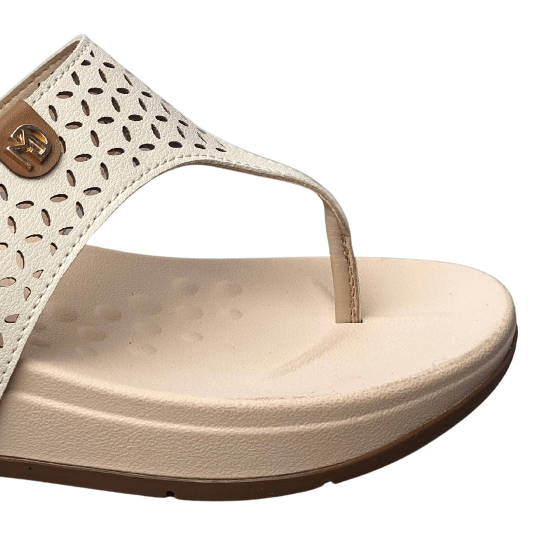 Frescor e Estilo: O acabamento em tiras largas com perfurações a laser permite uma melhor ventilação, mantendo os pés frescos em dias quentes.