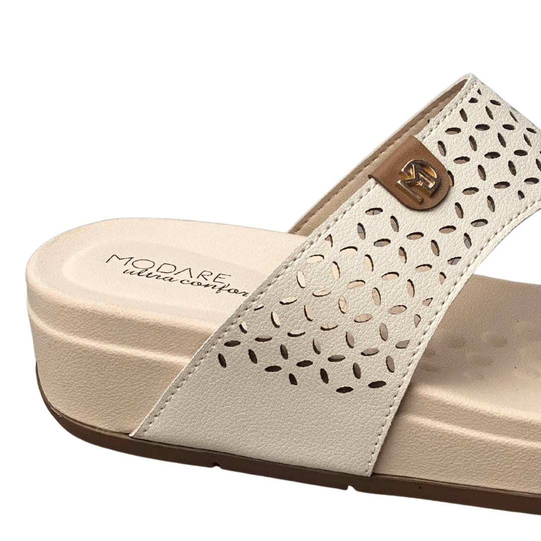 Marca: Modare Ultraconforto (assinatura na palmilha e logo "MD" em metal na tira).