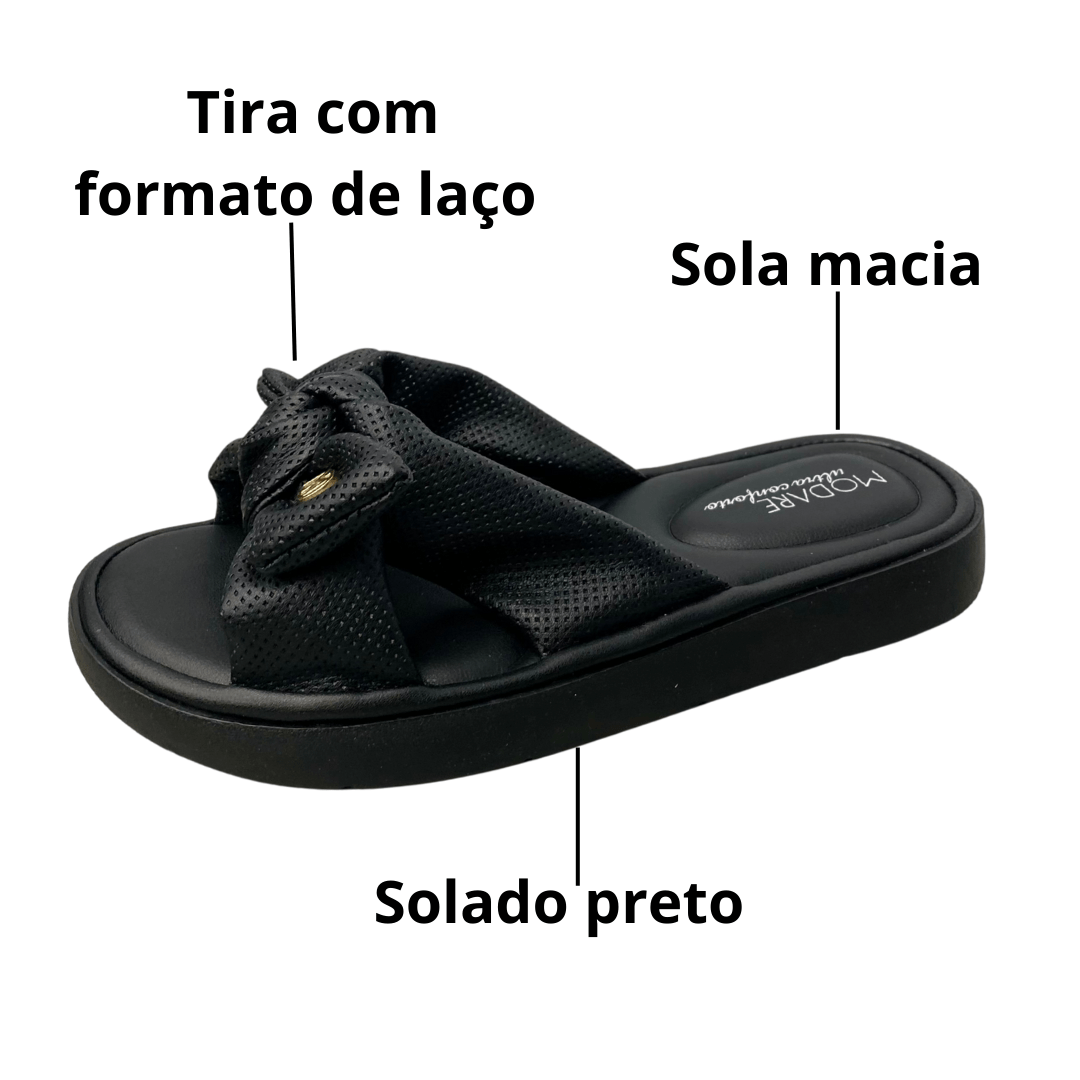 Estilo: O design moderno e o detalhe da tira com laço adicionam um toque de sofisticação e charme, tornando o calçado perfeito para compor looks casuais e descontraídos.