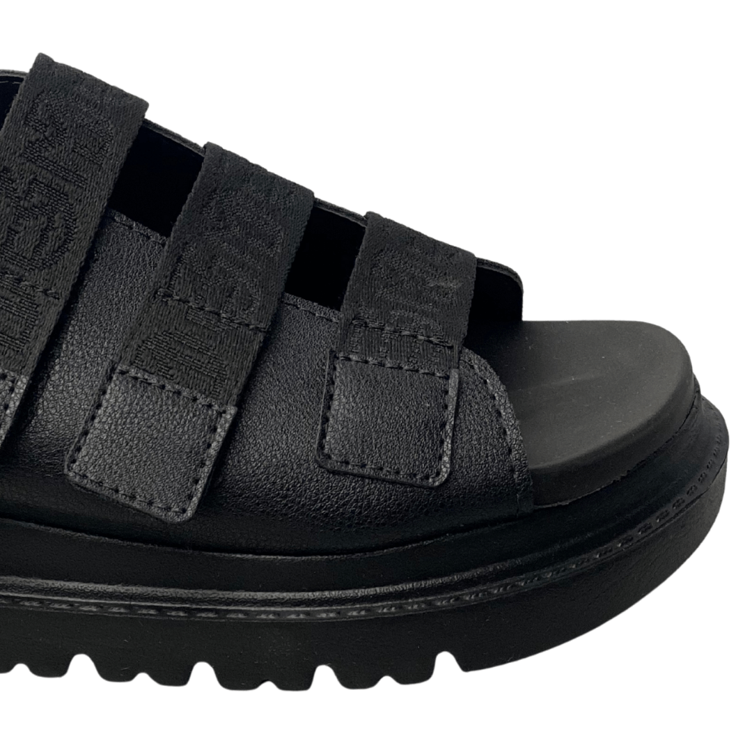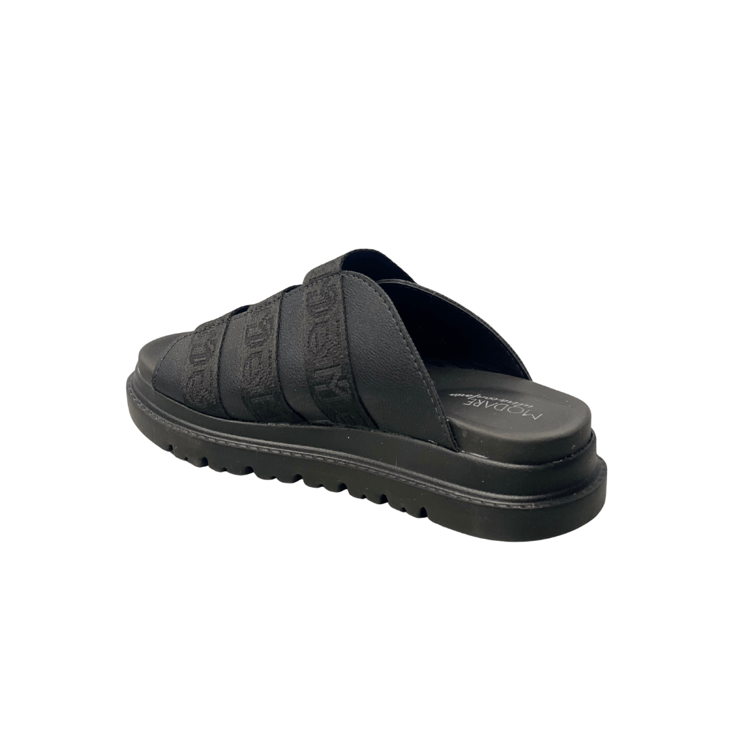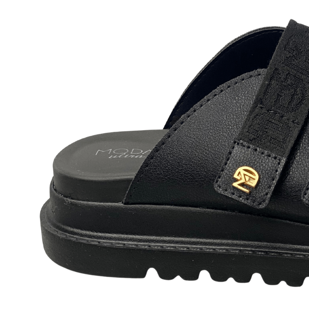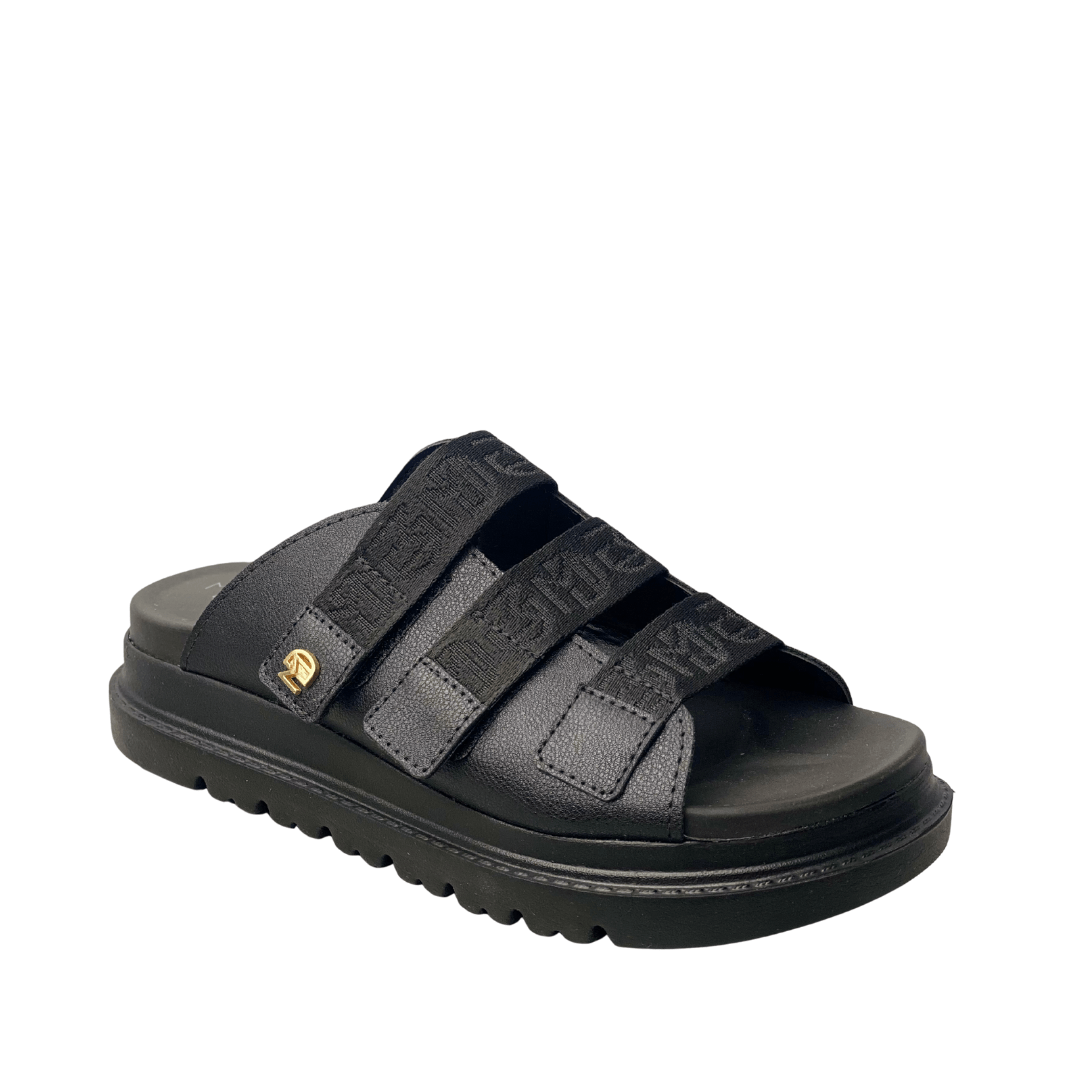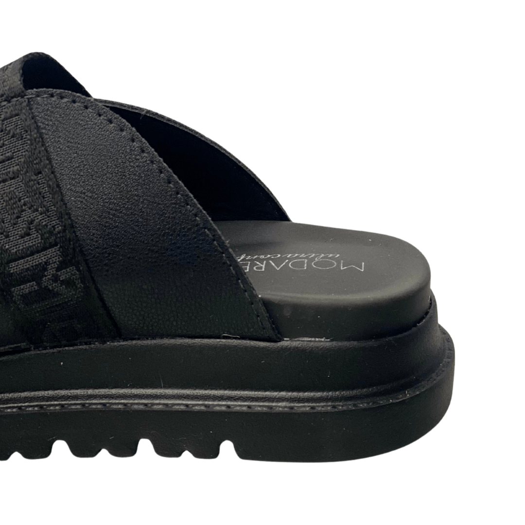 Estilo Chunky e Moderno: O solado levemente tratorado e as tiras largas de nylon ou tecido (possivelmente com a marca Modare gravada) conferem um visual moderno e robusto (chunky).