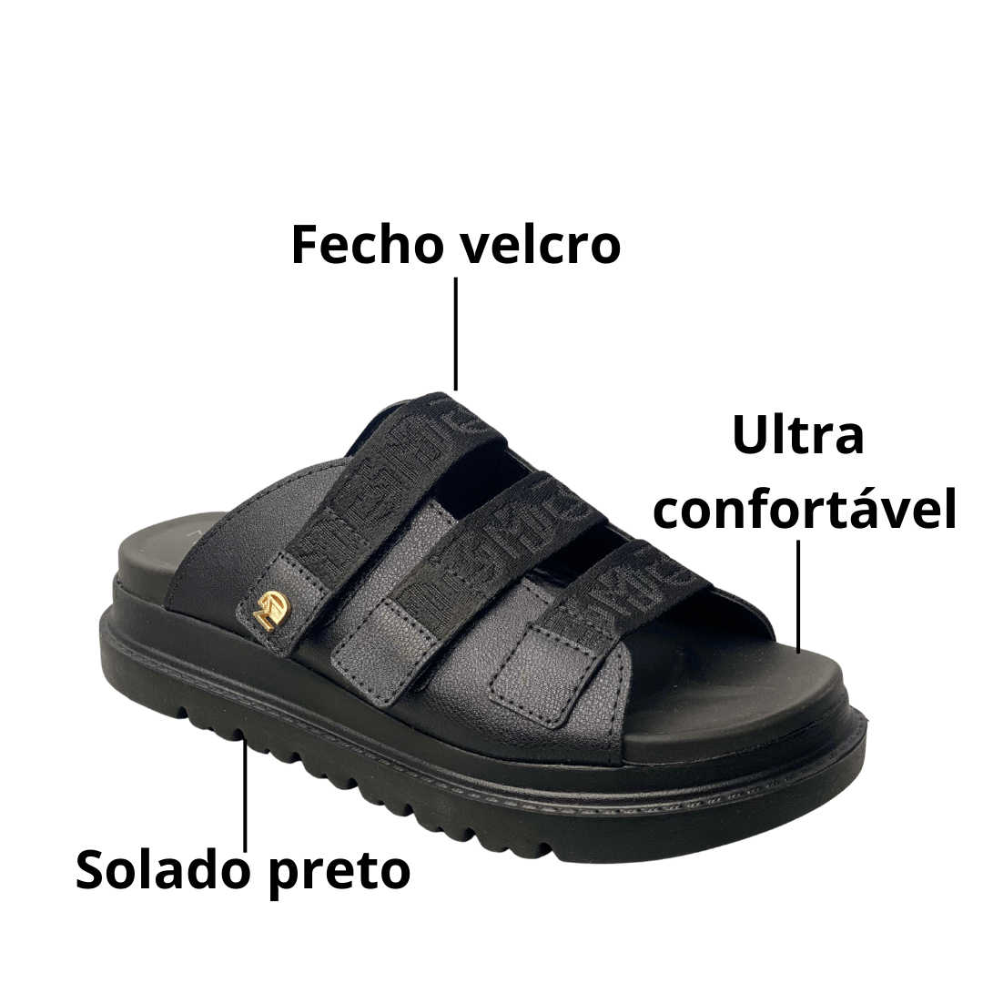Calce e Ajuste Fácil: O fechamento ajustável com Velcro nas três tiras superiores permite um calce rápido e um ajuste perfeito ao formato do pé, garantindo a sensação de calce fácil.