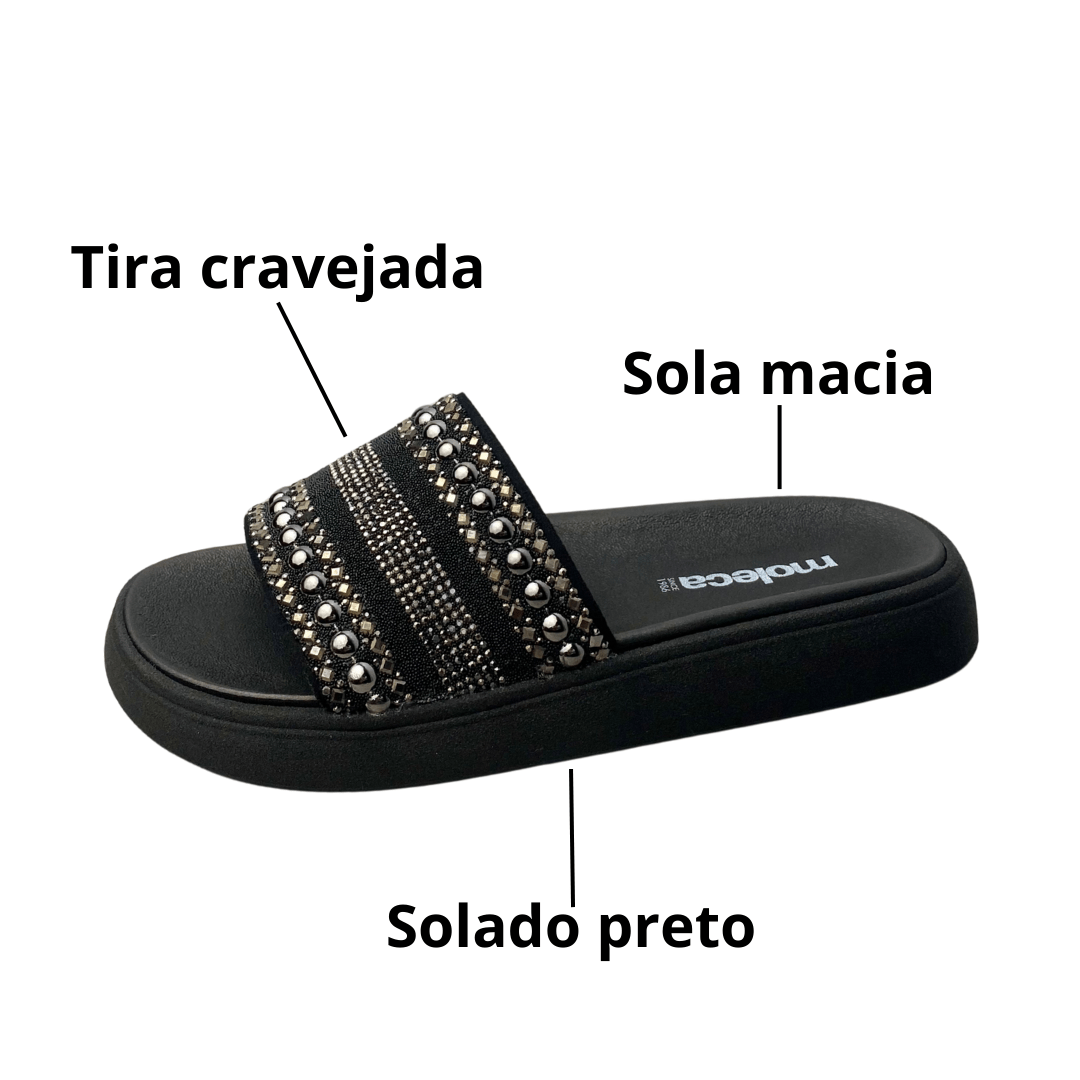 A Birken Moleca Preta com Tira Cravejada é perfeita para quem ama unir conforto e sofisticação. Seu design moderno com detalhes em pedrarias dá um toque fashion, transformando até os looks mais básicos em produções elegantes e cheias de estilo.