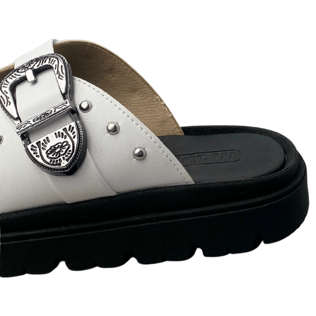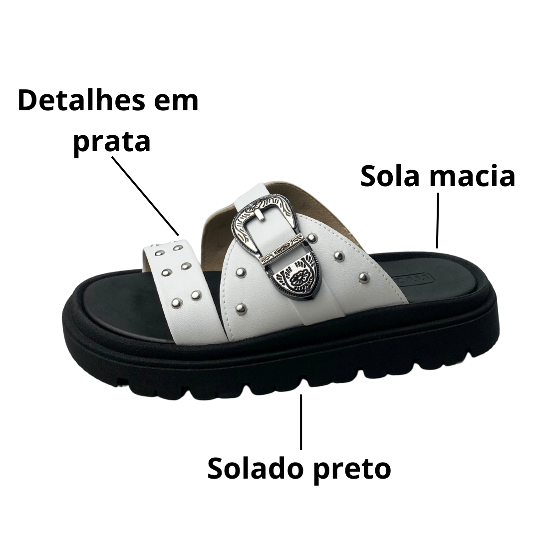 Ideal para combinar com calças jeans, shorts, vestidos e saias. O tom branco com solado preto e fivela prateada permite criar produções casuais, urbanas ou até mais ousadas, dependendo da ocasião.