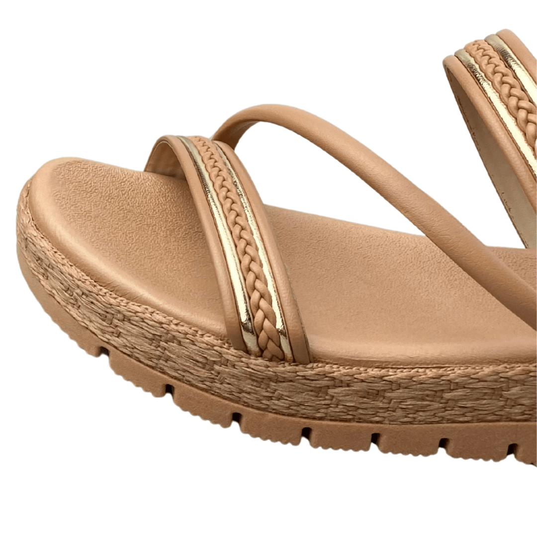 A Birken Moleca Nude Dourado é a combinação perfeita entre conforto e estilo. Seu design moderno e delicado, com detalhes em dourado, traz sofisticação ao visual, enquanto o solado anatômico garante leveza e bem-estar para o dia todo.