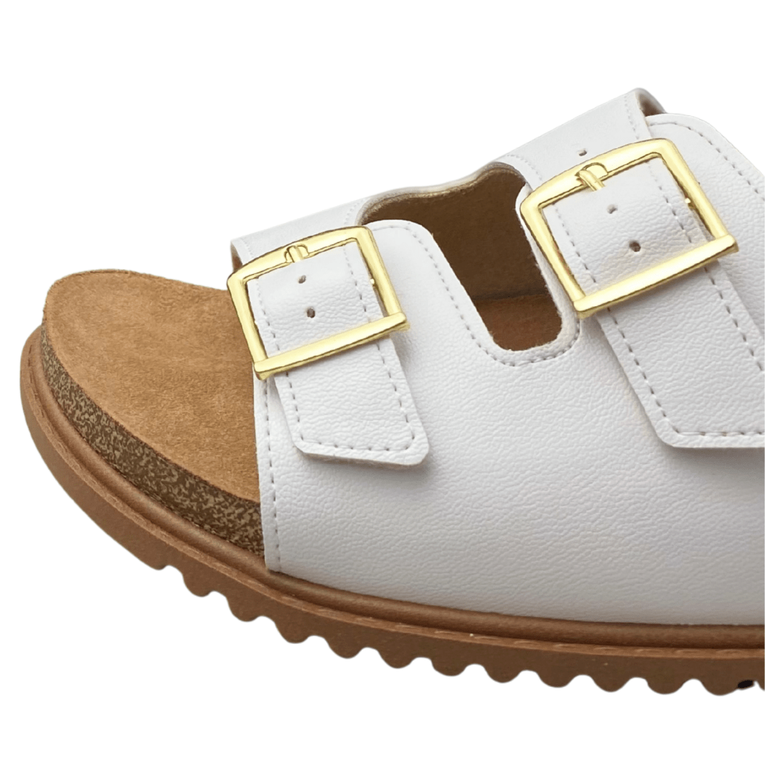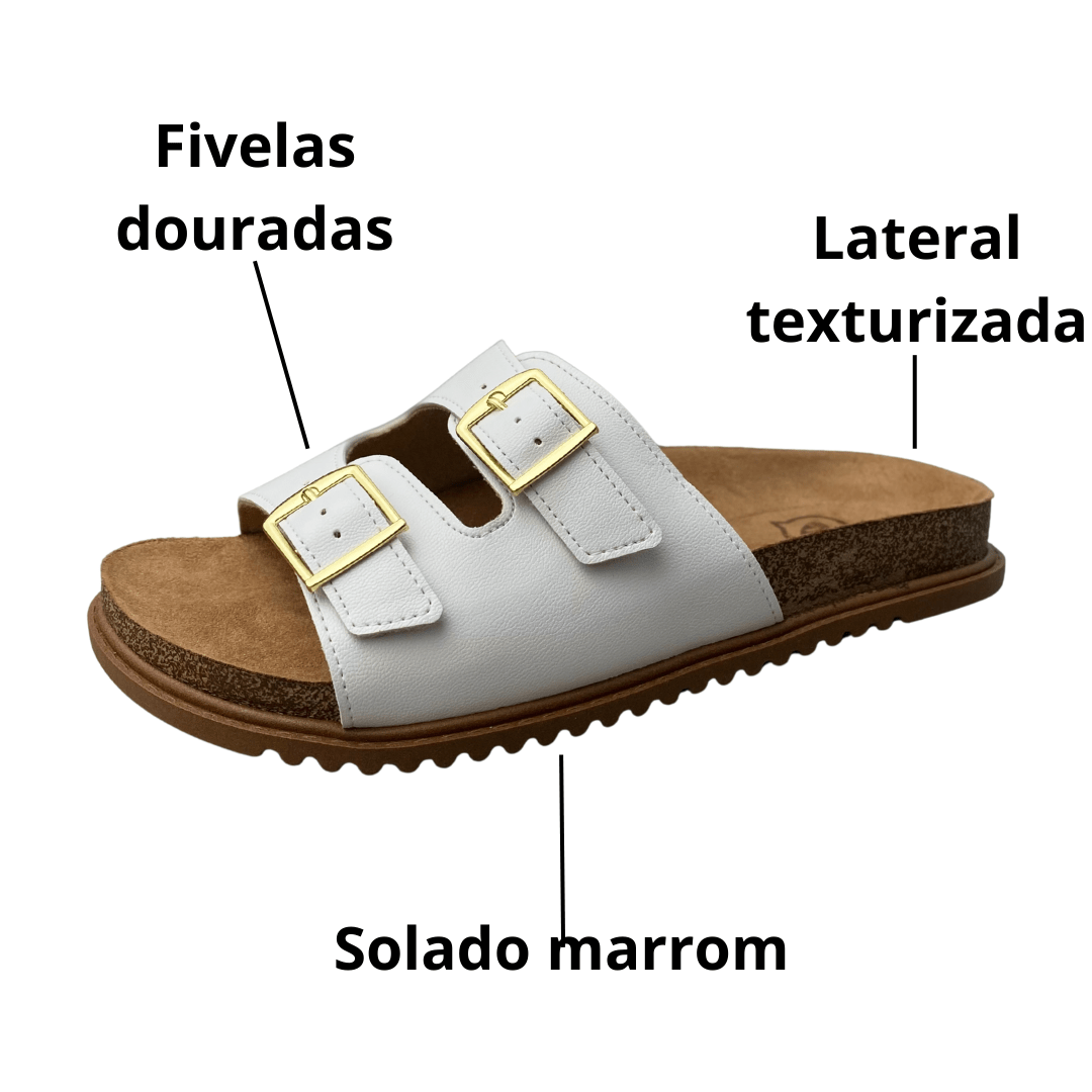 Birken Molekinha Feminina Infantil Branco Fivelas Douradas