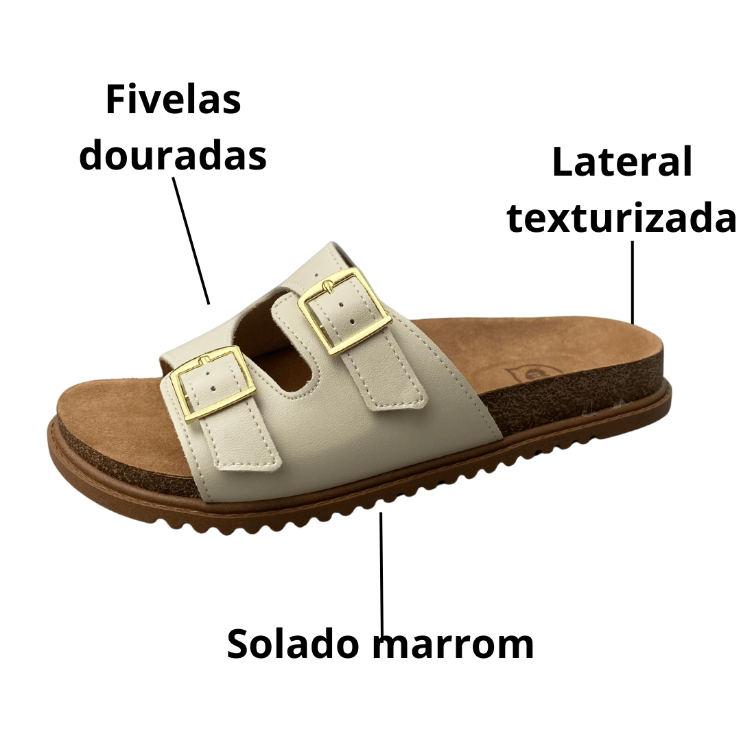 Birken Molekinha Feminina Infantil Branco Off Fivelas Douradas