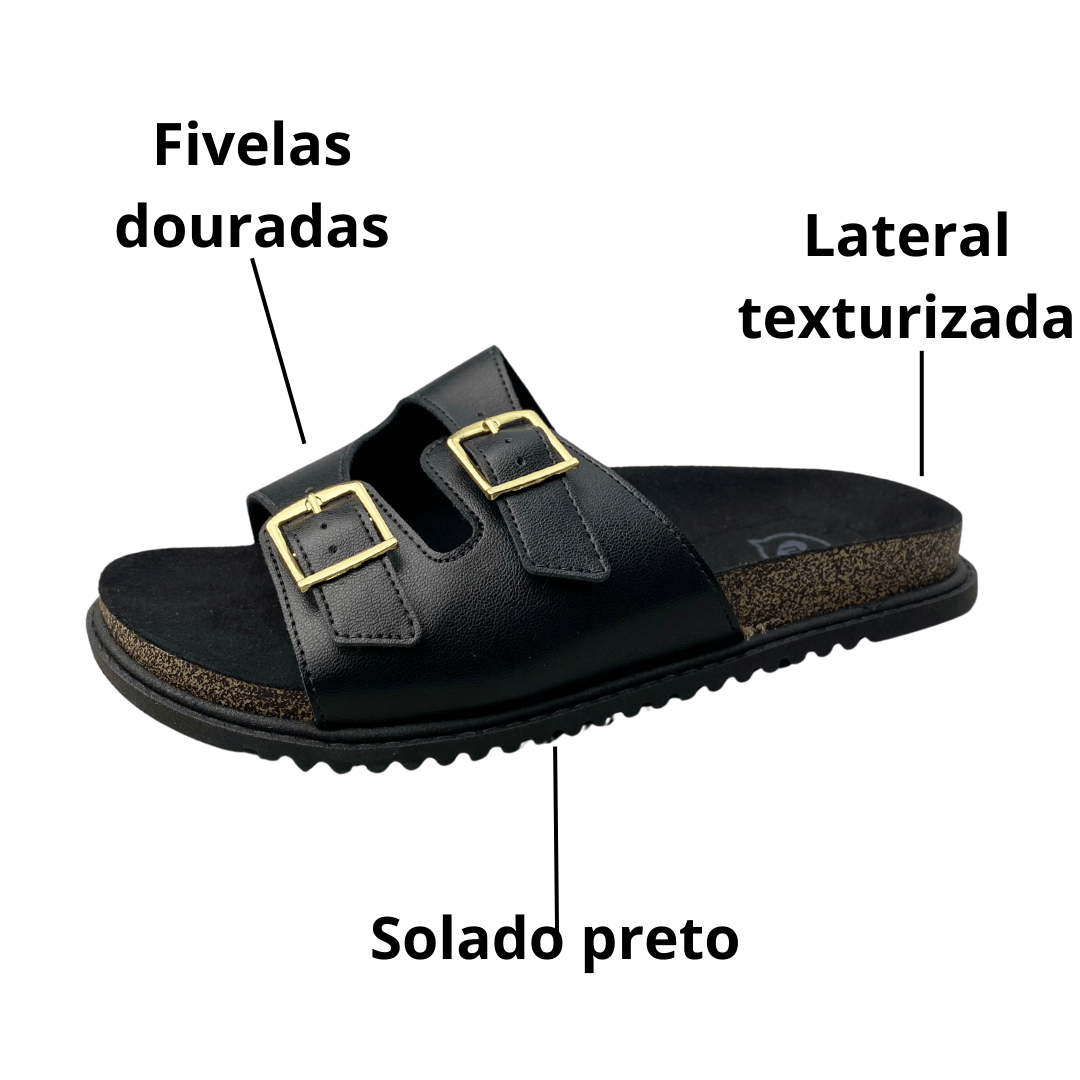Birken Molekinha Feminina Infantil Preto Fivelas Douradas