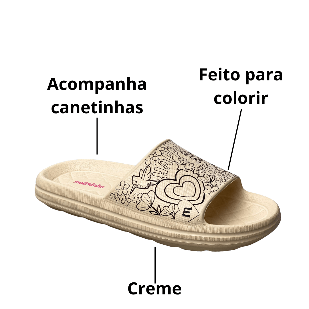 Diversão garantida: As pequenas podem soltar a criatividade e personalizar suas próprias sandálias com as canetinhas coloridas que acompanham o produto.