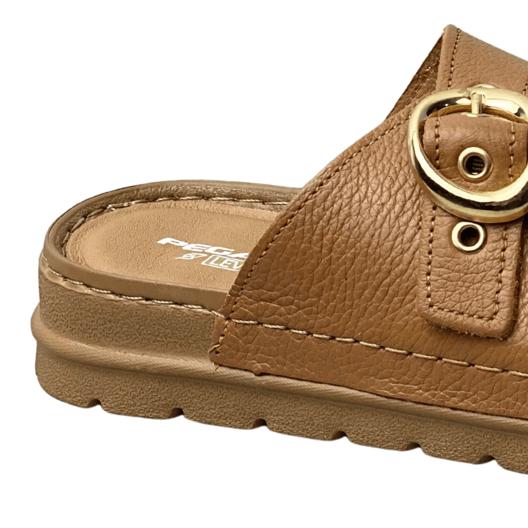 Design moderno com fivela dourada, garantindo um visual sofisticado e atual.