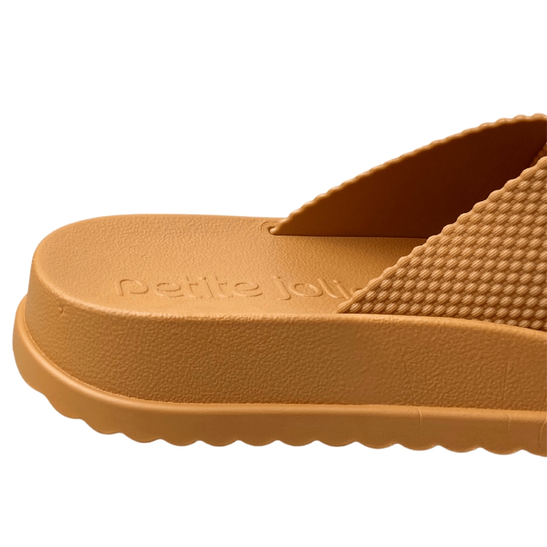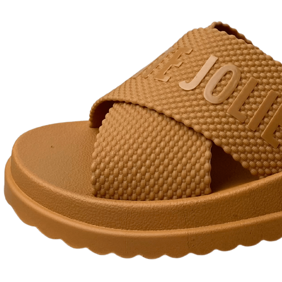 Estilo: O design com tiras cruzadas e o tom neutro do doce de leite, traz um visual moderno e sofisticado, perfeito para looks descontraídos e elegantes.