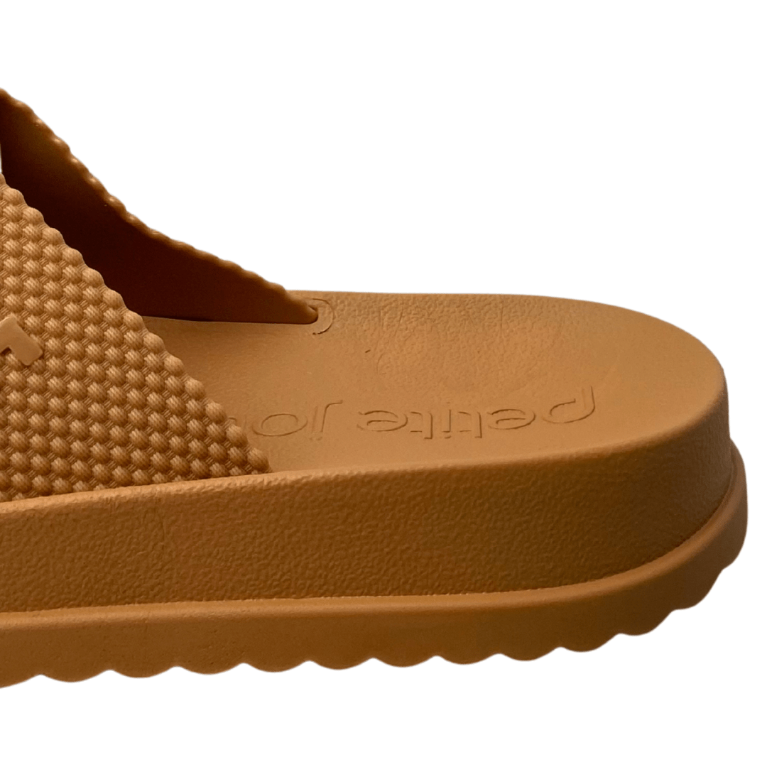 Detalhe: Tiras cruzadas com o logo "Petite Jolie" em relevo, dando um toque de identidade e exclusividade ao modelo.