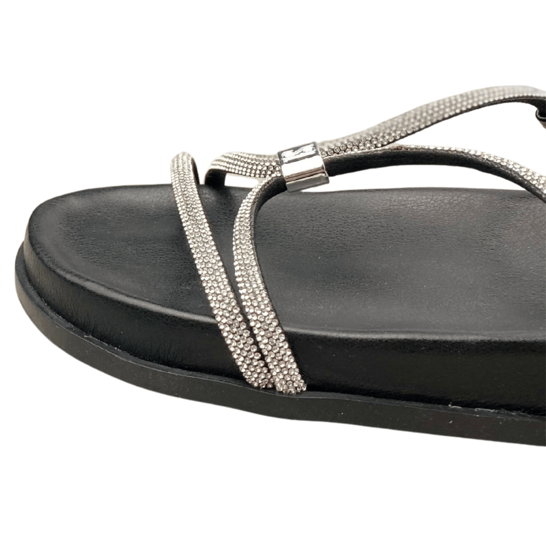 Design moderno com tiras cravejadas que adicionam sofisticação ao look.