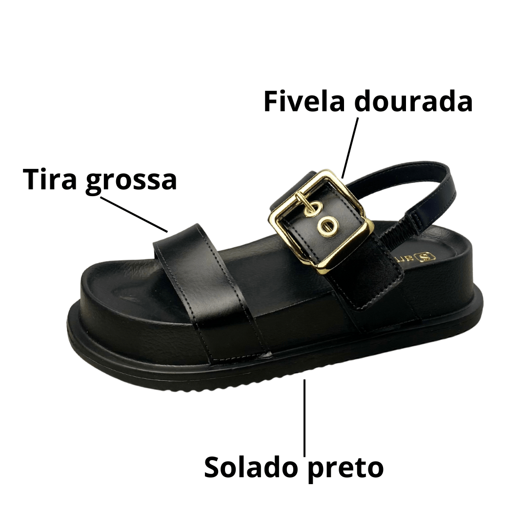 Birken Santinelli Feminina Preta com Fivela Dourada