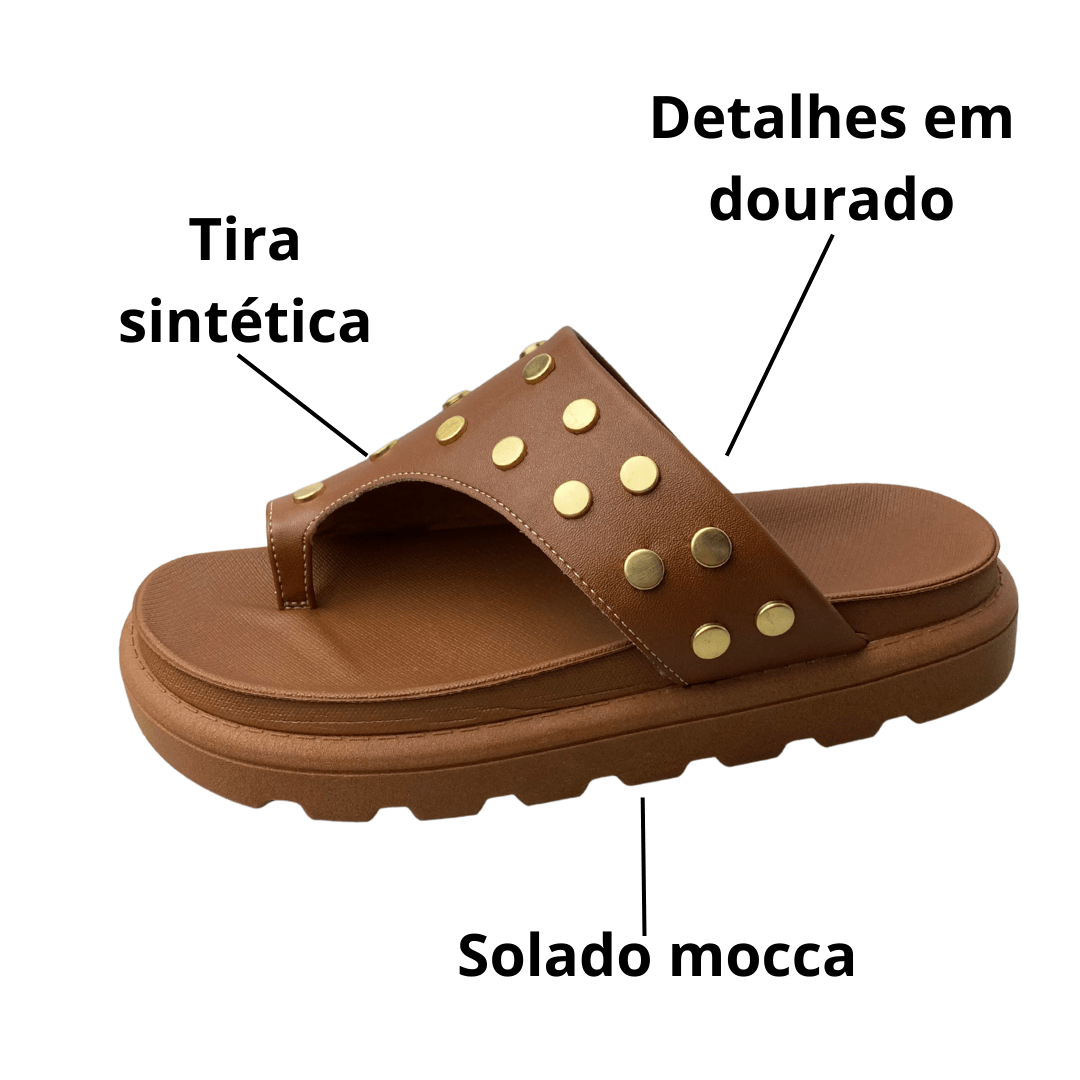 Detalhes em tachas douradas que trazem personalidade e elegância.