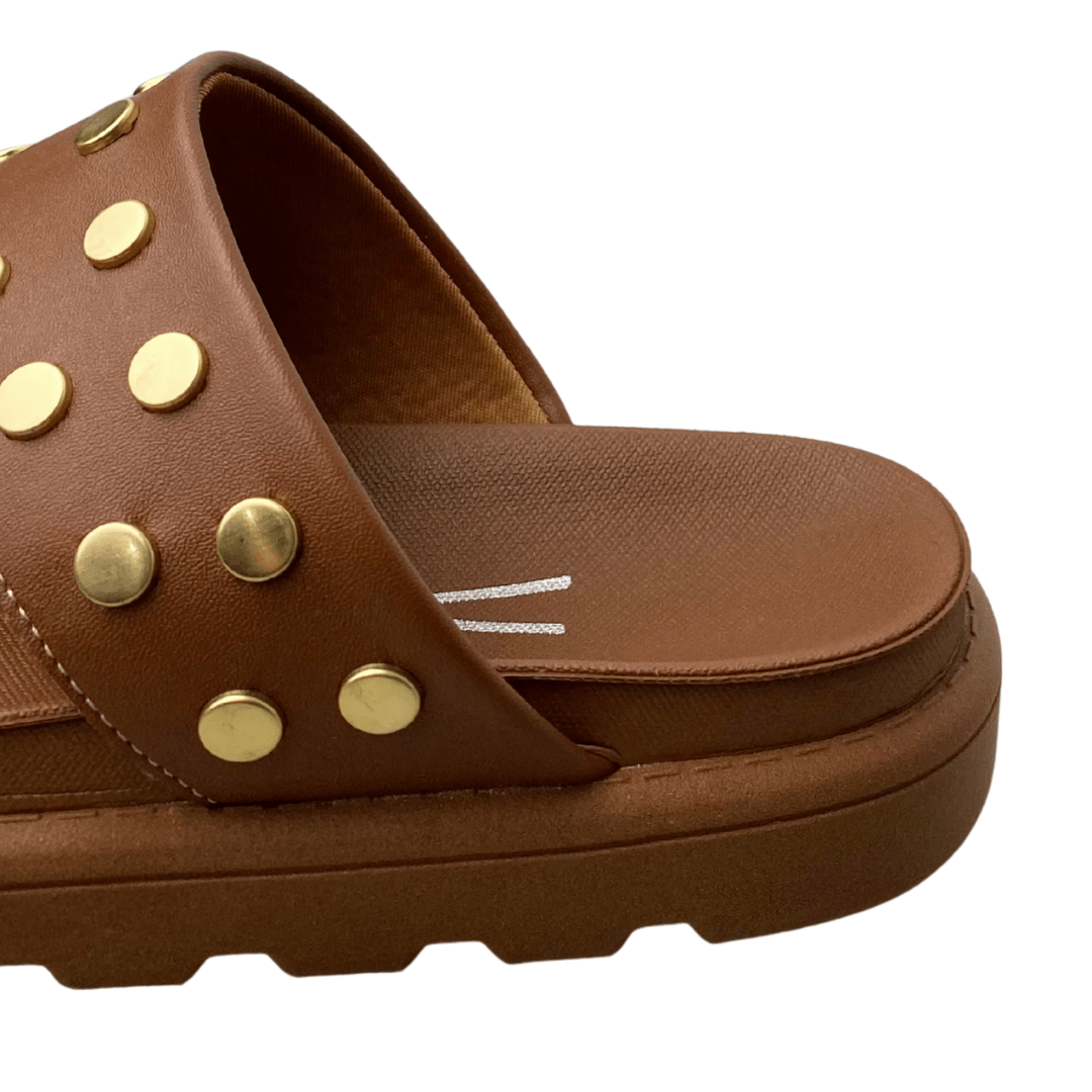 A Birken Vizzano Feminino Mocca Dourado é a escolha perfeita para mulheres que buscam conforto aliado a estilo. Seu design moderno com aplicação de tachas douradas proporciona um visual fashion e versátil, ideal para destacar qualquer look sem abrir mão do bem-estar ao caminhar.