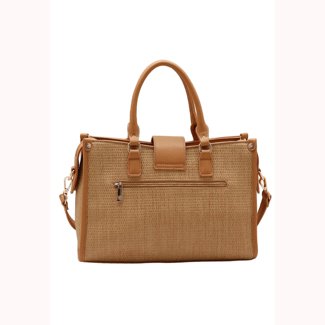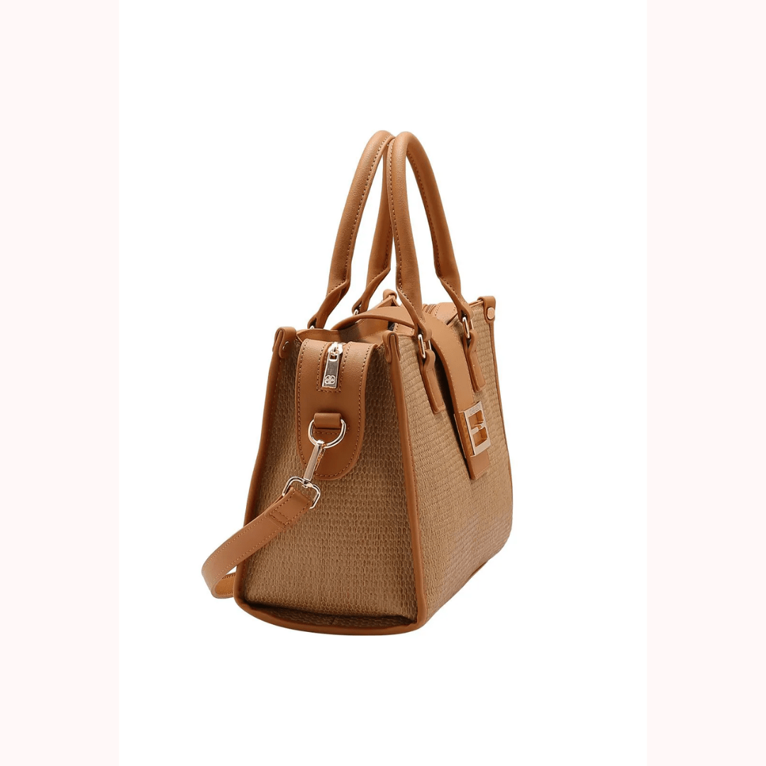 Design sofisticado com detalhes em caramelo e ferragens douradas, que valorizam qualquer look.