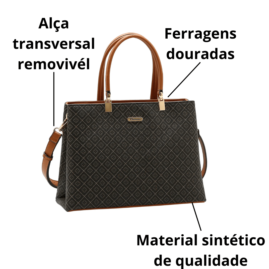 As alças são resistentes? Sim, as alças da Chenson são reforçadas com costuras duplas e conectores metálicos projetados para suportar o peso do uso cotidiano.