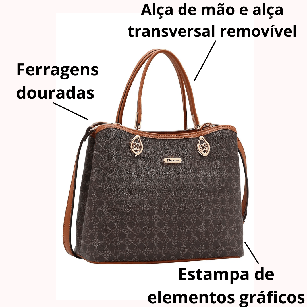 Bolsa Chenson Feminina Café com Ferragem Dourada