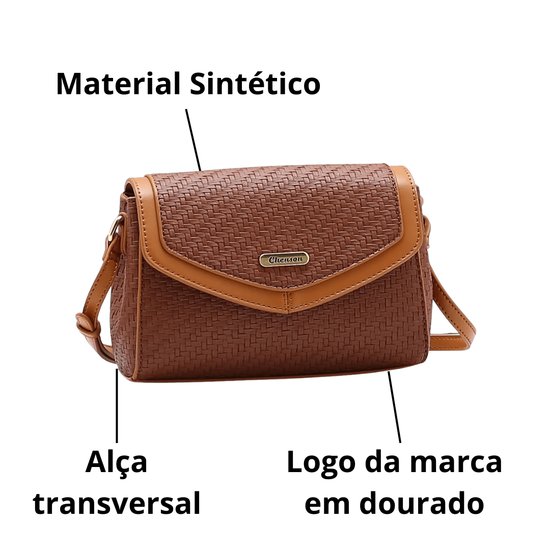 Aposte no charme atemporal com a Bolsa Chenson Marrom e Caramelo. Com seu design estruturado e a sofisticada textura tressê (entrelaçada), ela é o acessório que faltava para dar um toque de classe instantâneo a qualquer look. O tamanho compacto é ideal para quem gosta de levar apenas o essencial com muito estilo e praticidade.