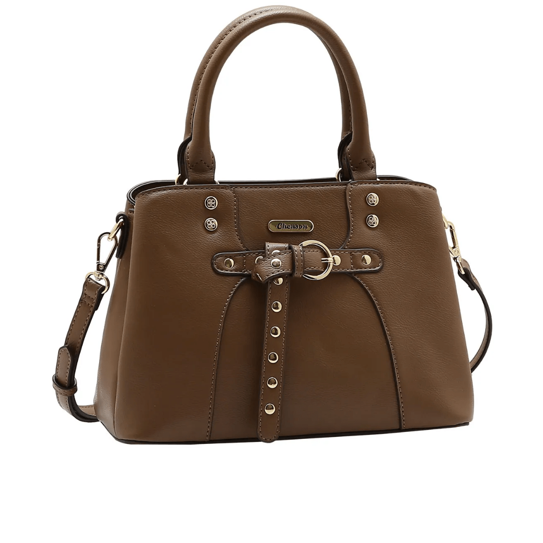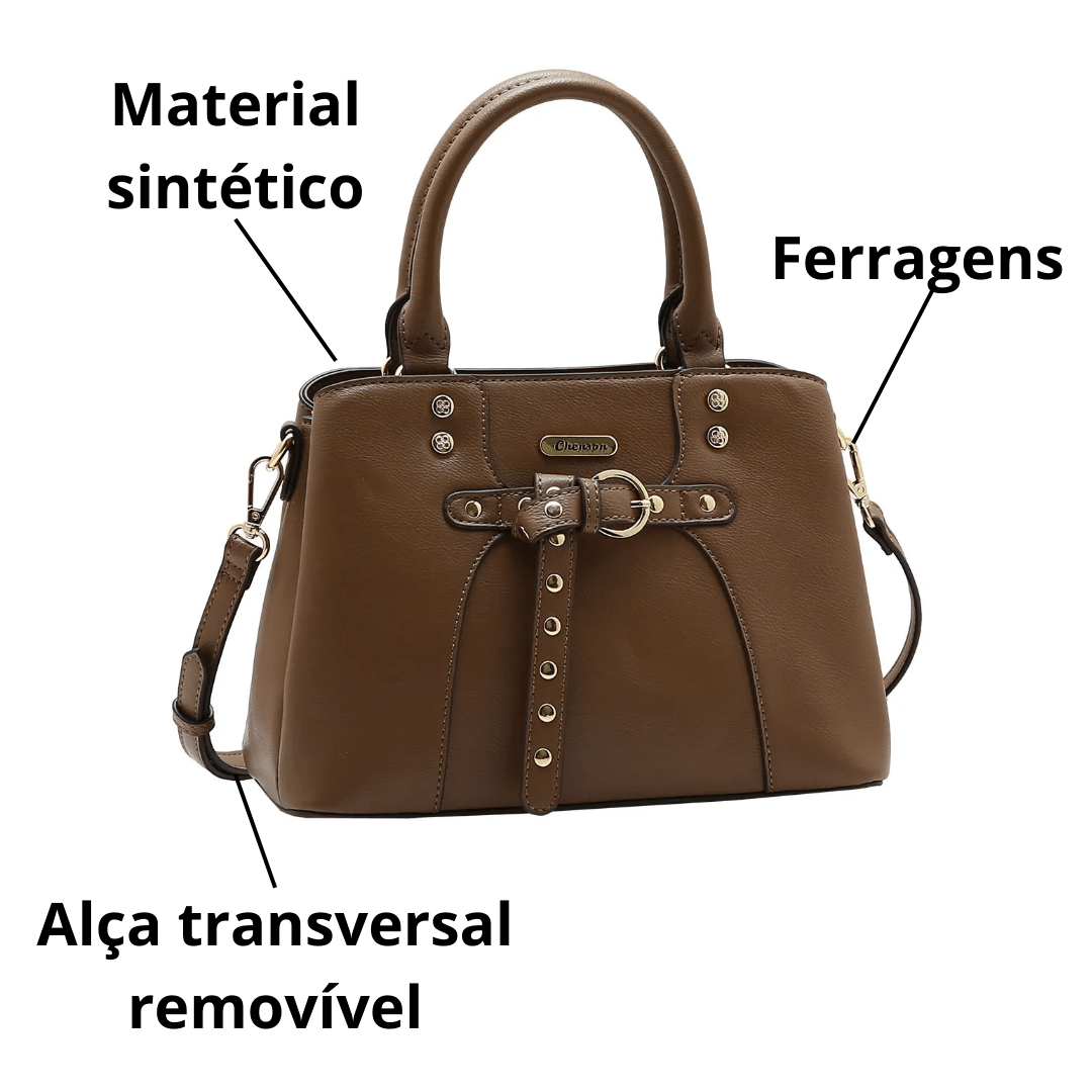 A Bolsa Chenson Feminina Natural (marrom) une a elegância do formato clássico de mão com o toque ousado das aplicações metálicas. Com um acabamento liso impecável, o destaque desta peça é a sua fivela central e as tachas (studs) , que conferem um brilho extra e um design exclusivo. É a bolsa perfeita para mulheres que querem destacar sua força e estilo no dia a dia.