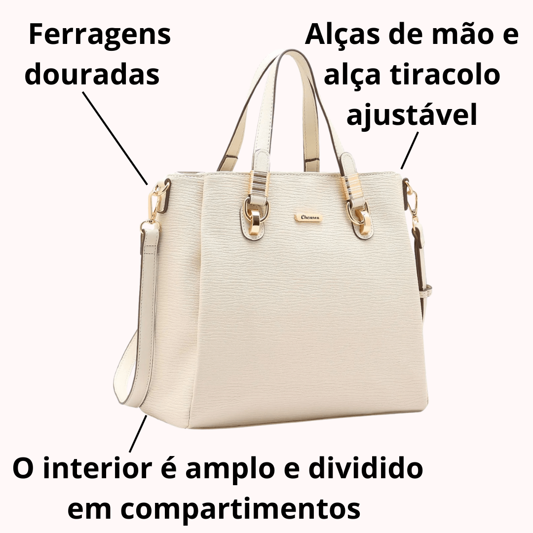 Bolsa Chenson Feminina Off White com Ferragens Douradas