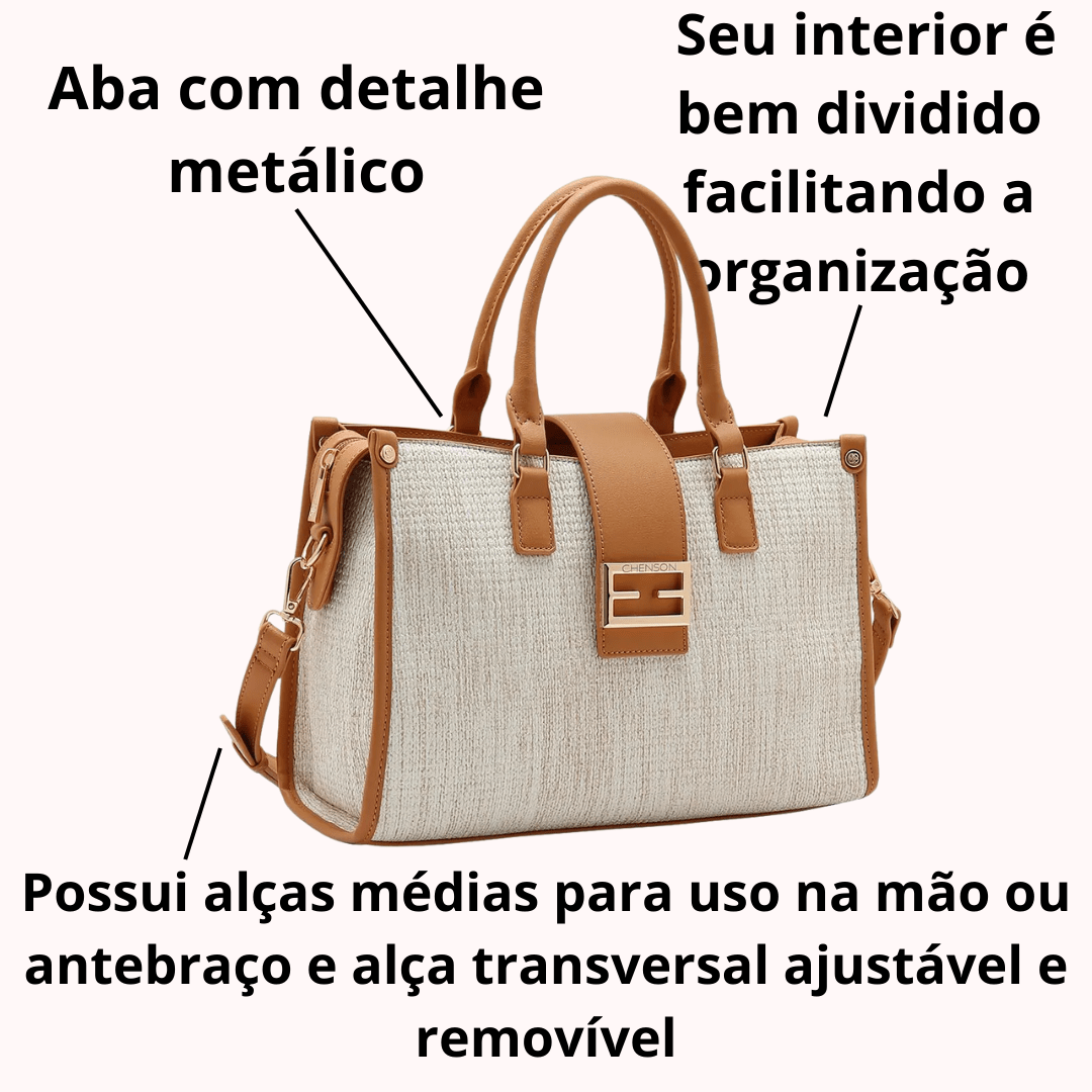 Bolsa Chenson Feminina Off White com Ferragens Douradas
