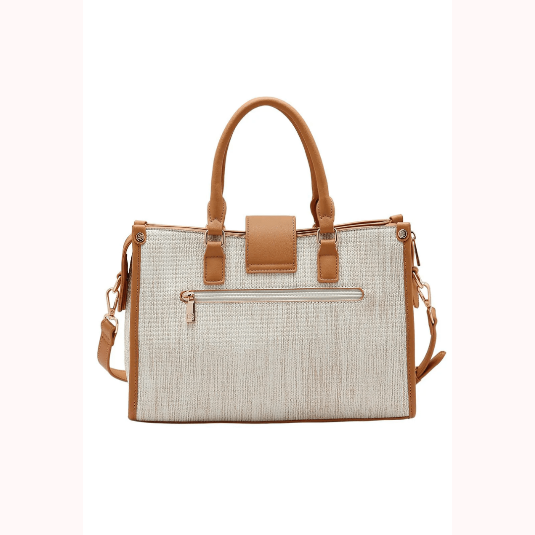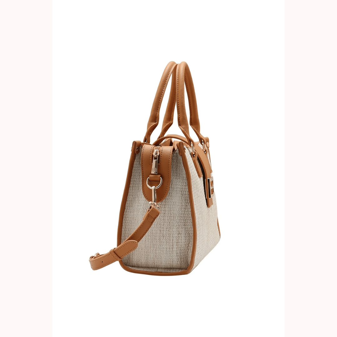 Design sofisticado com detalhes em caramelo e ferragens douradas, que valorizam qualquer look.