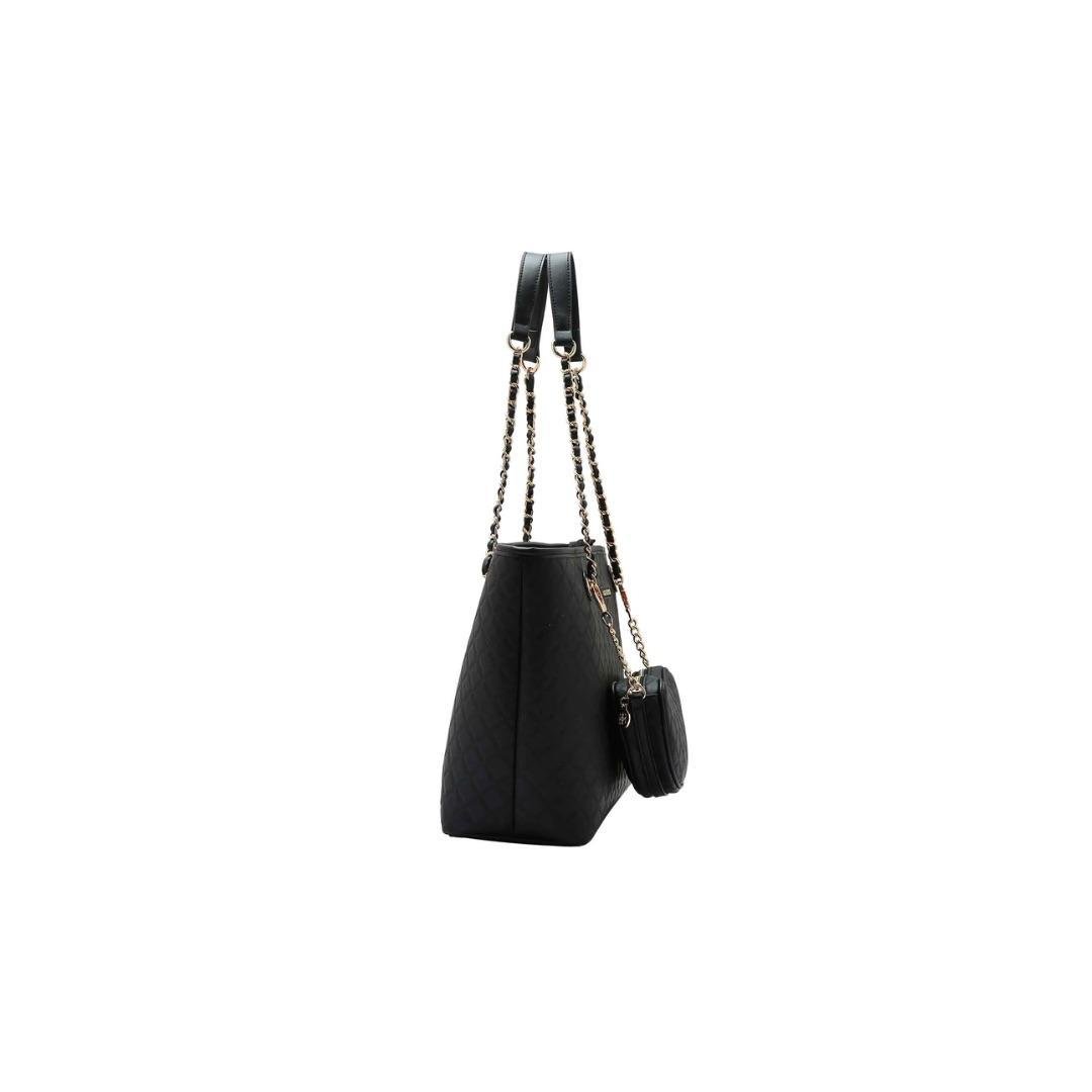 Modelo: Bolsa de mão estruturada com alças de corrente e couro sintético.
