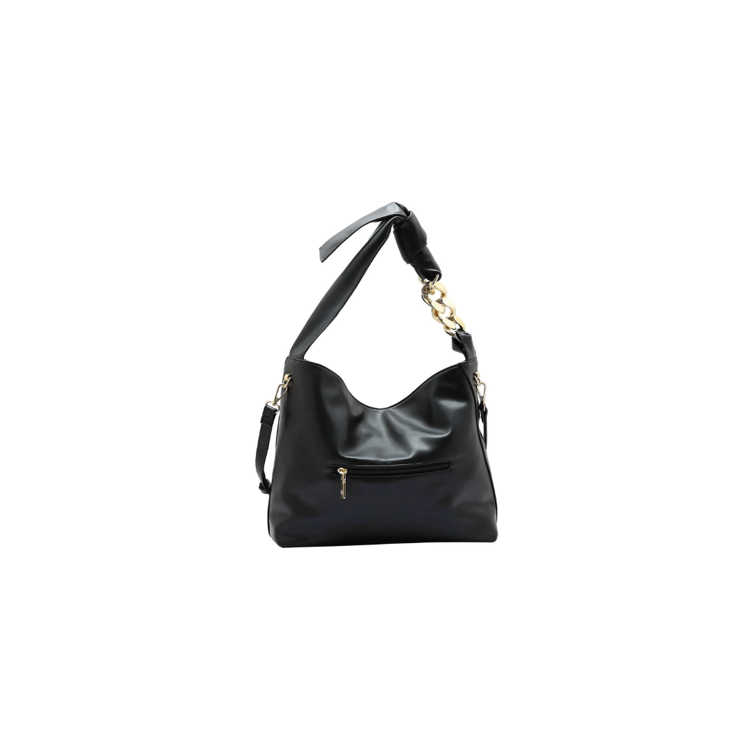 Elegância moderna: design sofisticado com detalhe em corrente dourada e nó estilizado.