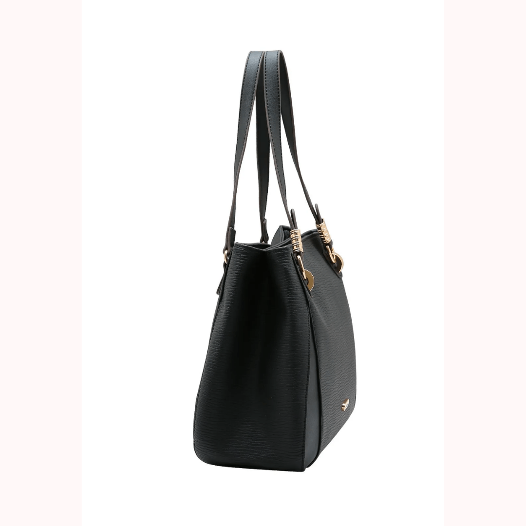Cor: Preta clássica com detalhes em ferragens douradas.