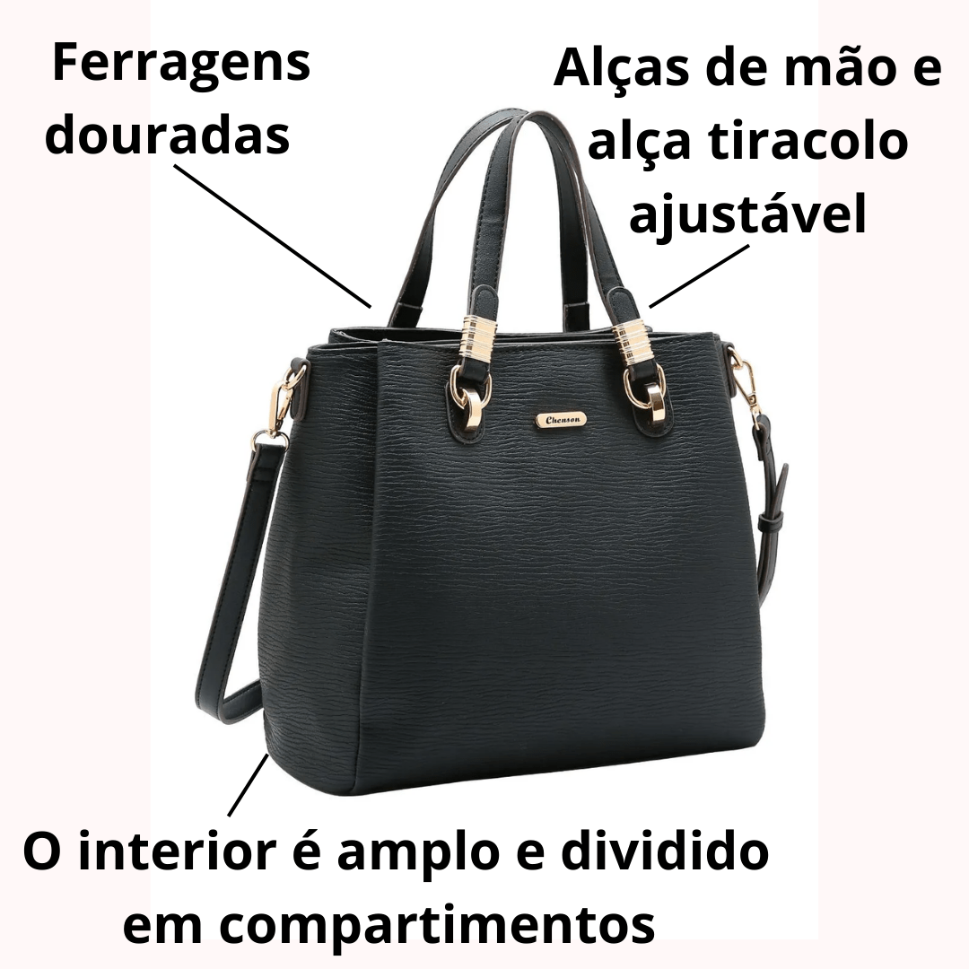 Perfeita para o trabalho, encontros casuais ou eventos mais elegantes. Pode ser usada de forma prática na transversal para maior conforto ou na mão para um visual mais sofisticado.
