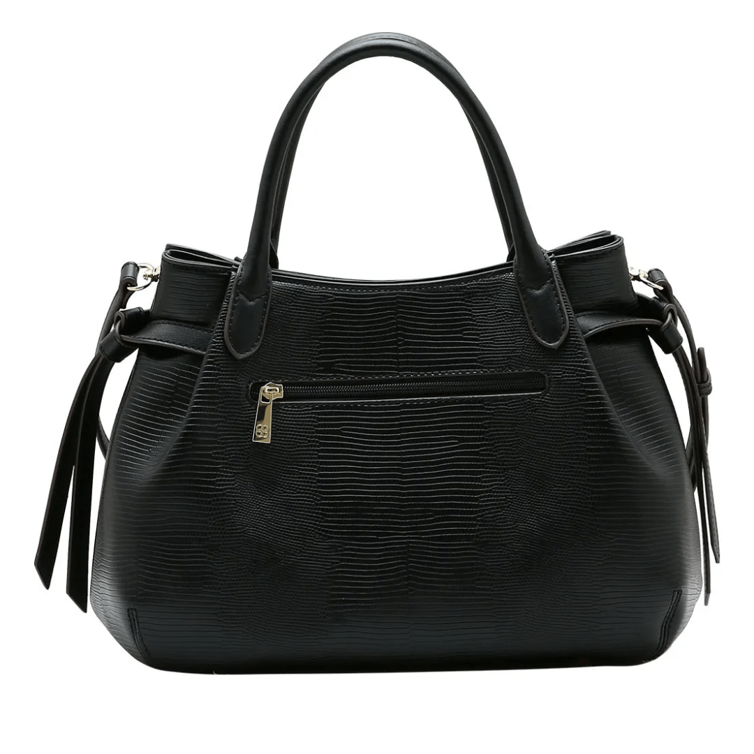 Perfeita para a mulher moderna que não abre mão do estilo no seu dia a dia, esta bolsa une o design atemporal com a funcionalidade que você precisa. O acabamento com textura de cobra sutil e o detalhe em ouro dão um toque de luxo a qualquer visual, seja ele para o escritório ou para um jantar especial. É mais que uma bolsa; é um acessório que eleva a sua autoconfiança.