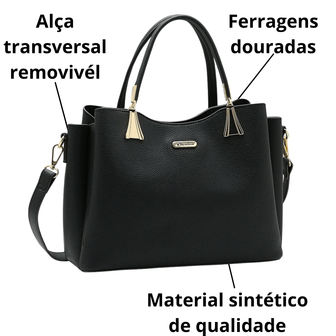 Versatilidade Inteligente: Oferece alças de mão fixas para um porte elegante e uma alça transversal removível para quando você precisar de total liberdade de movimento.