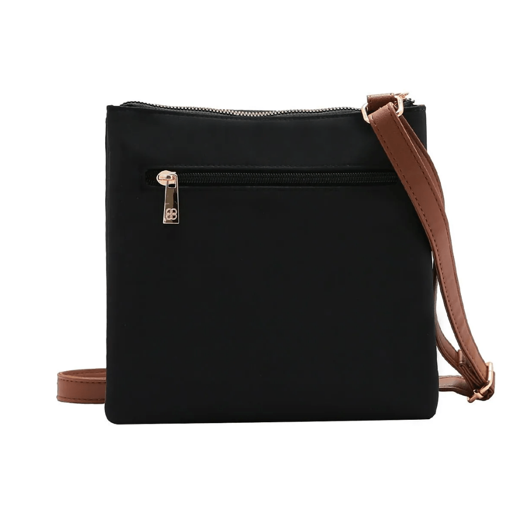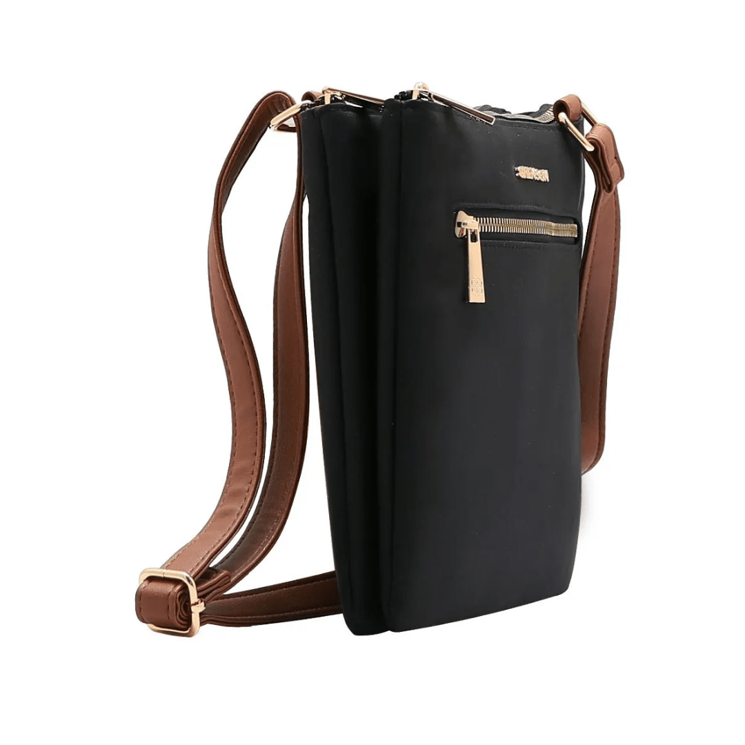 Cor: Preto (corpo principal) com alças e detalhes em tom Caramelo.