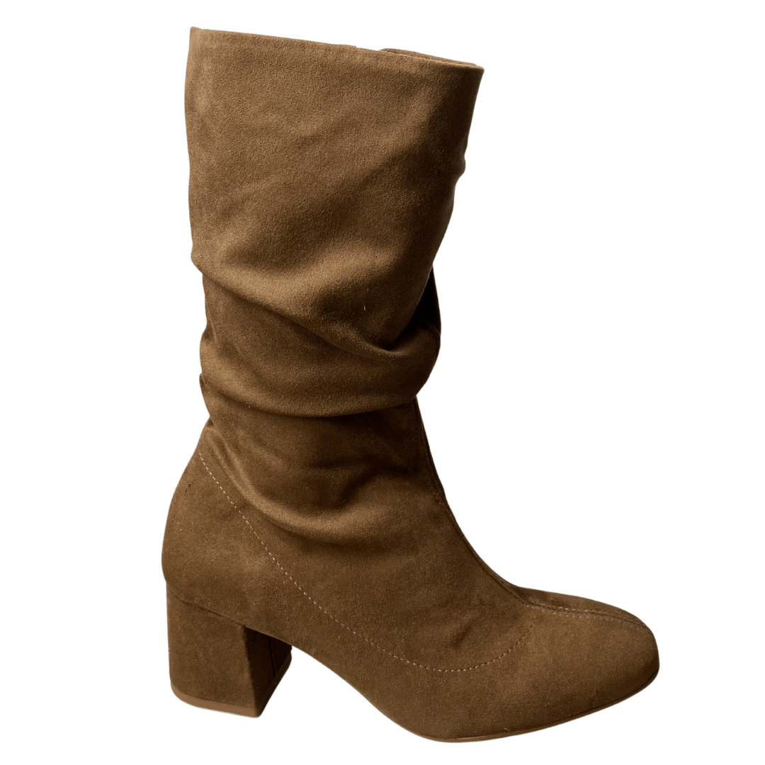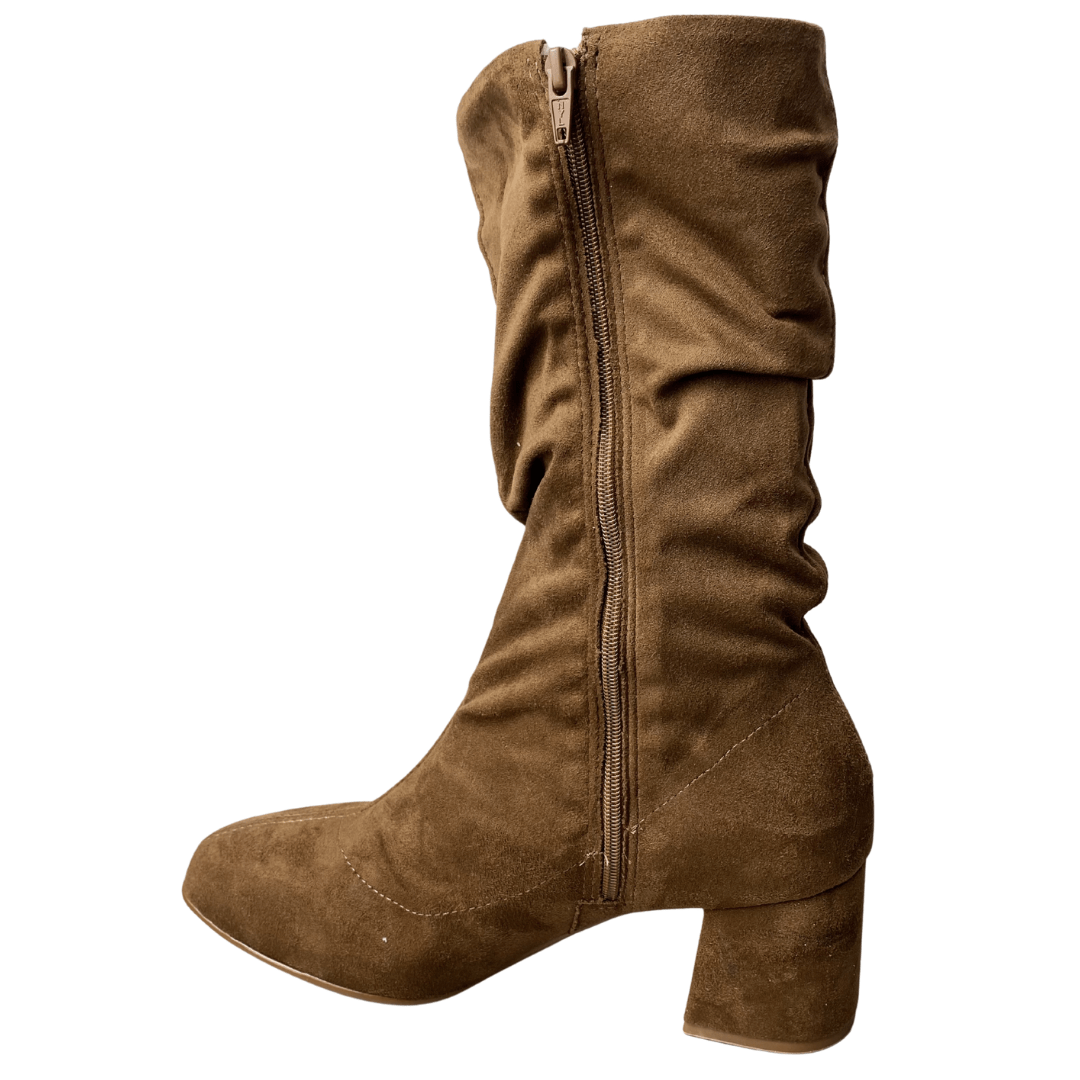 Cano: Médio, maleável e com leve franzido natural (efeito slouchy), ajustando-se à perna como uma meia.