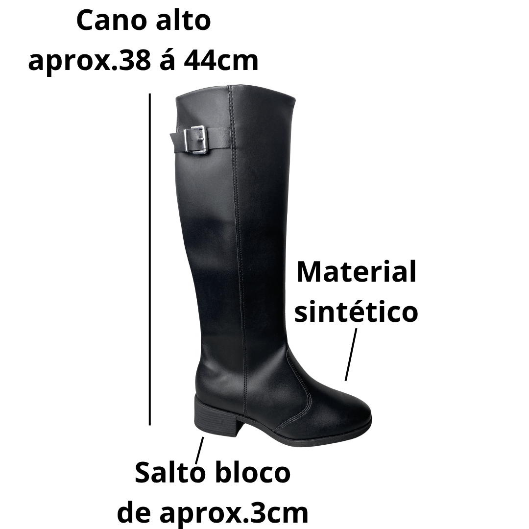 Detalhe: Tira com fivela metálica decorativa no topo do cano, conferindo um charme extra.