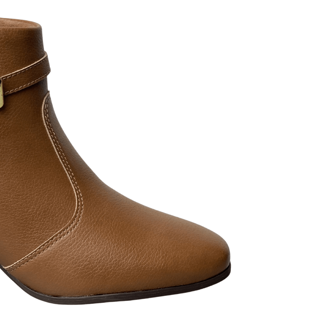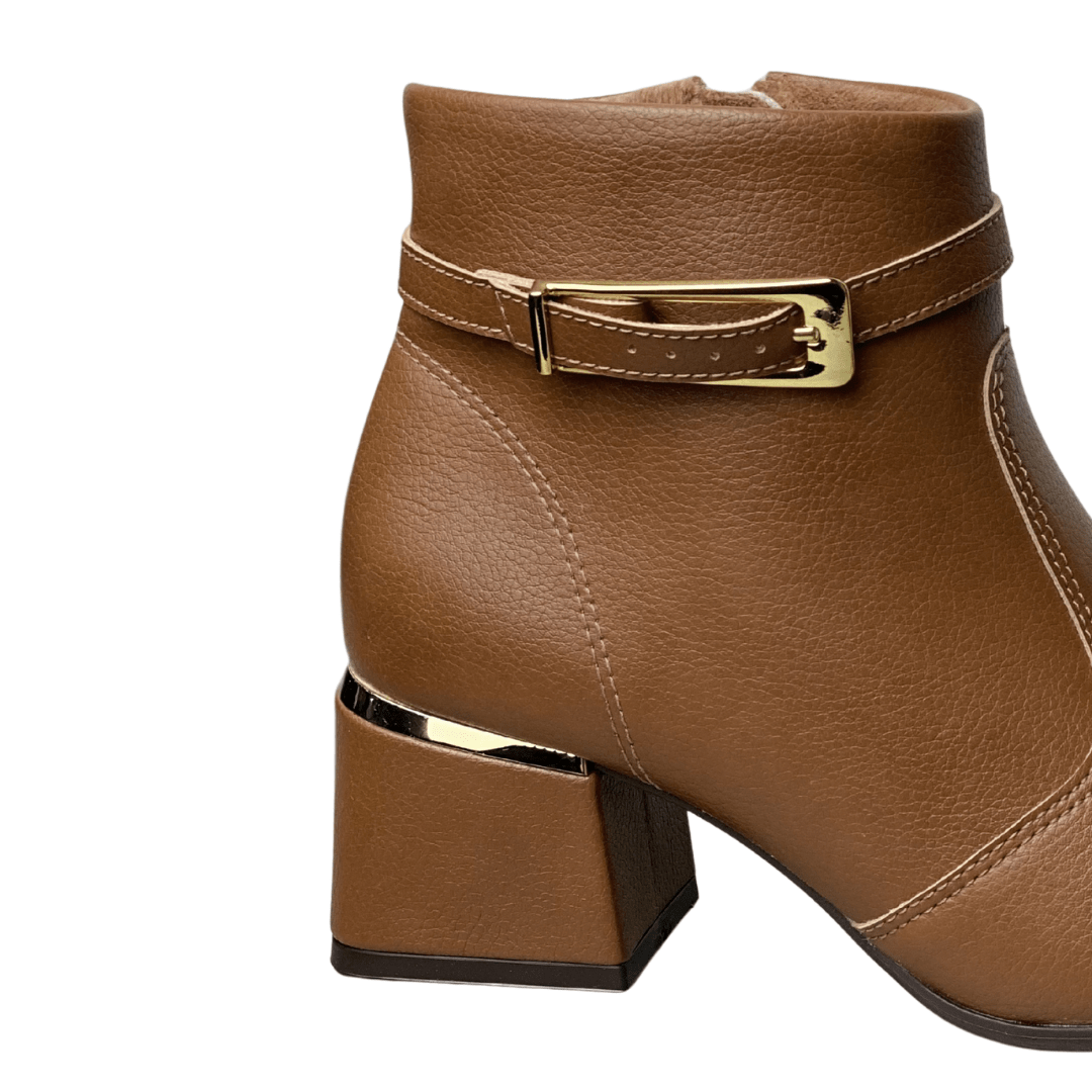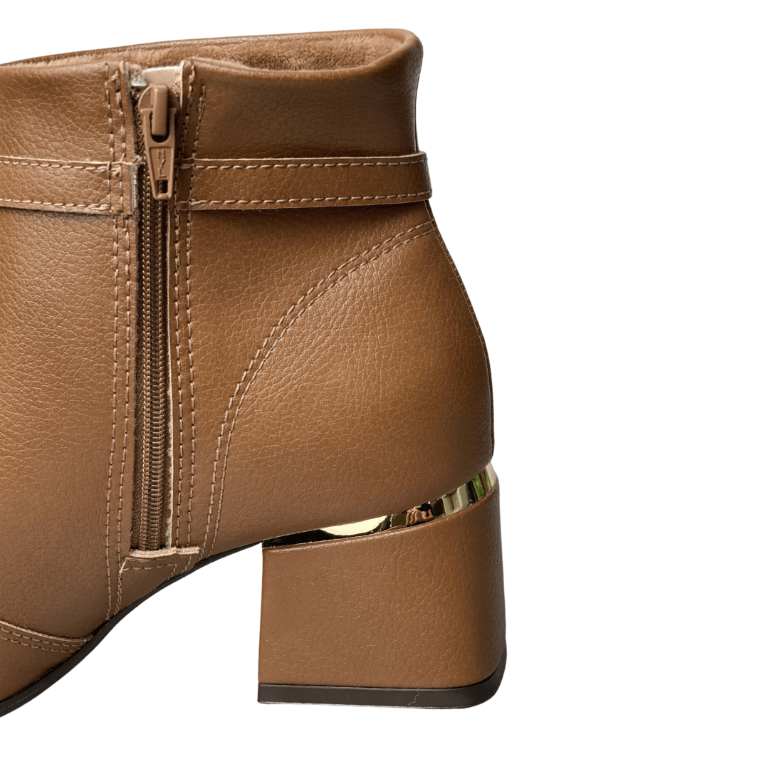 A bota que une o clássico ao moderno. Desenvolvida pela Modare, referência em bem-estar, este modelo em caramelo fosco traz uma textura sofisticada e detalhes dourados que elevam qualquer visual, sem abrir mão do conforto necessário para o dia a dia.