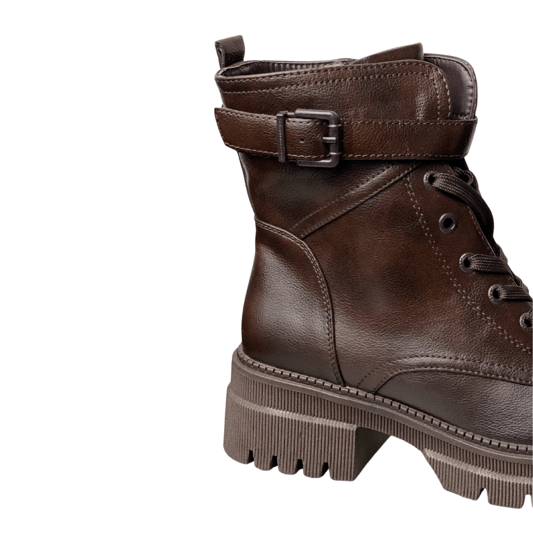 Bota Mooncity Feminina Marrom Coturno Tratorado com Fivela