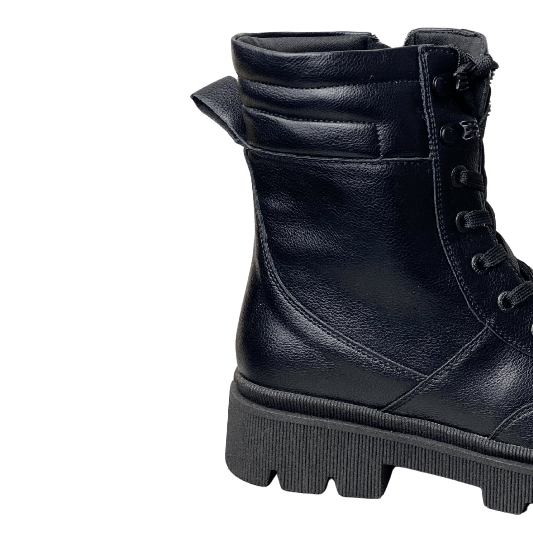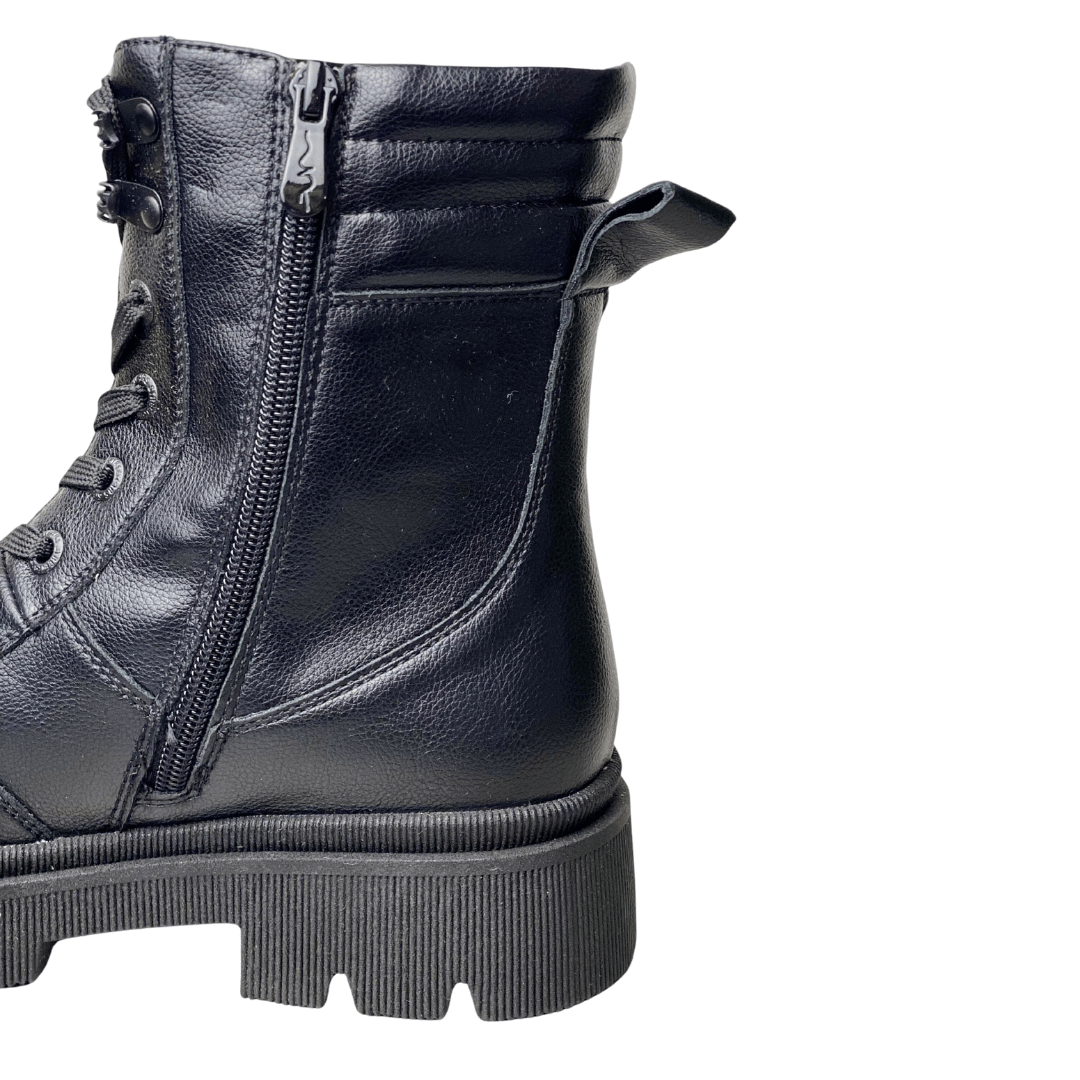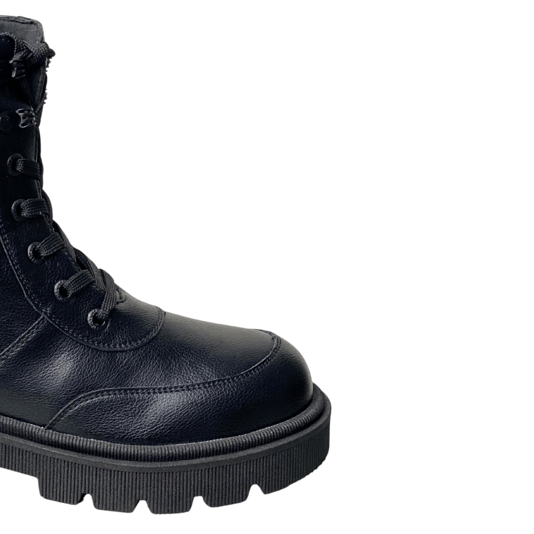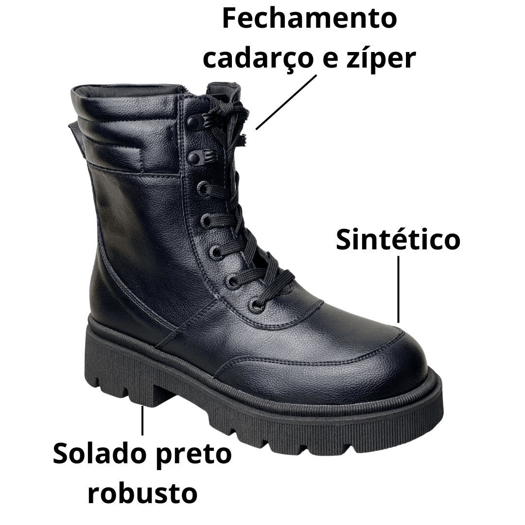 Fechamento: Cadarço frontal para ajuste perfeito e zíper lateral para facilitar o calce rápido.