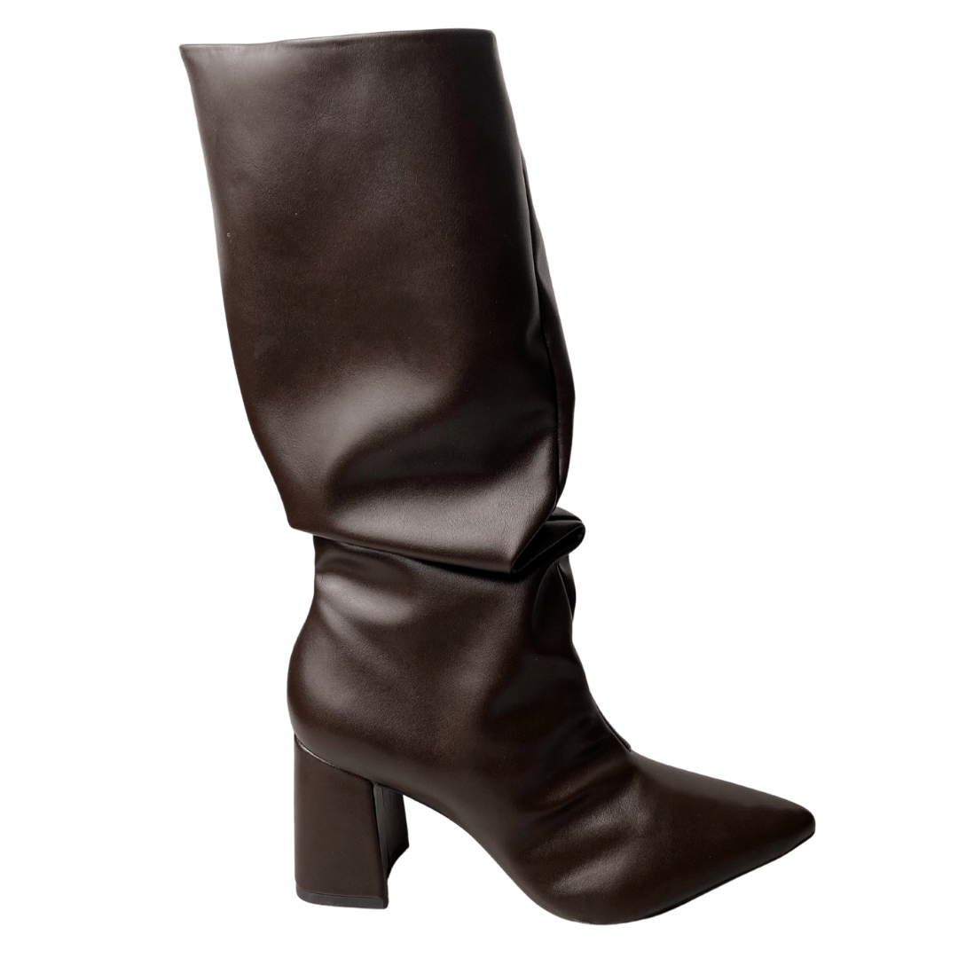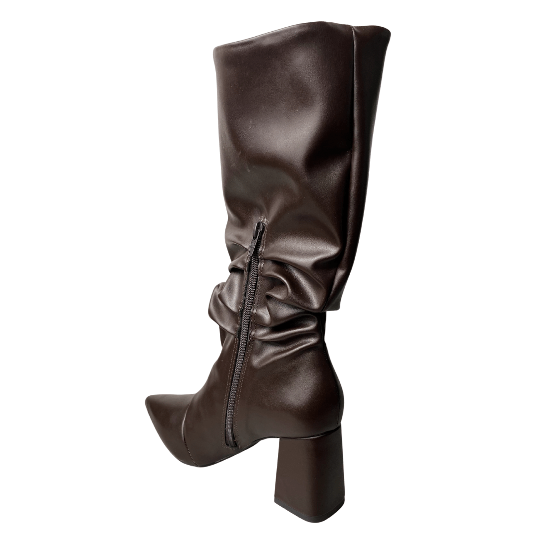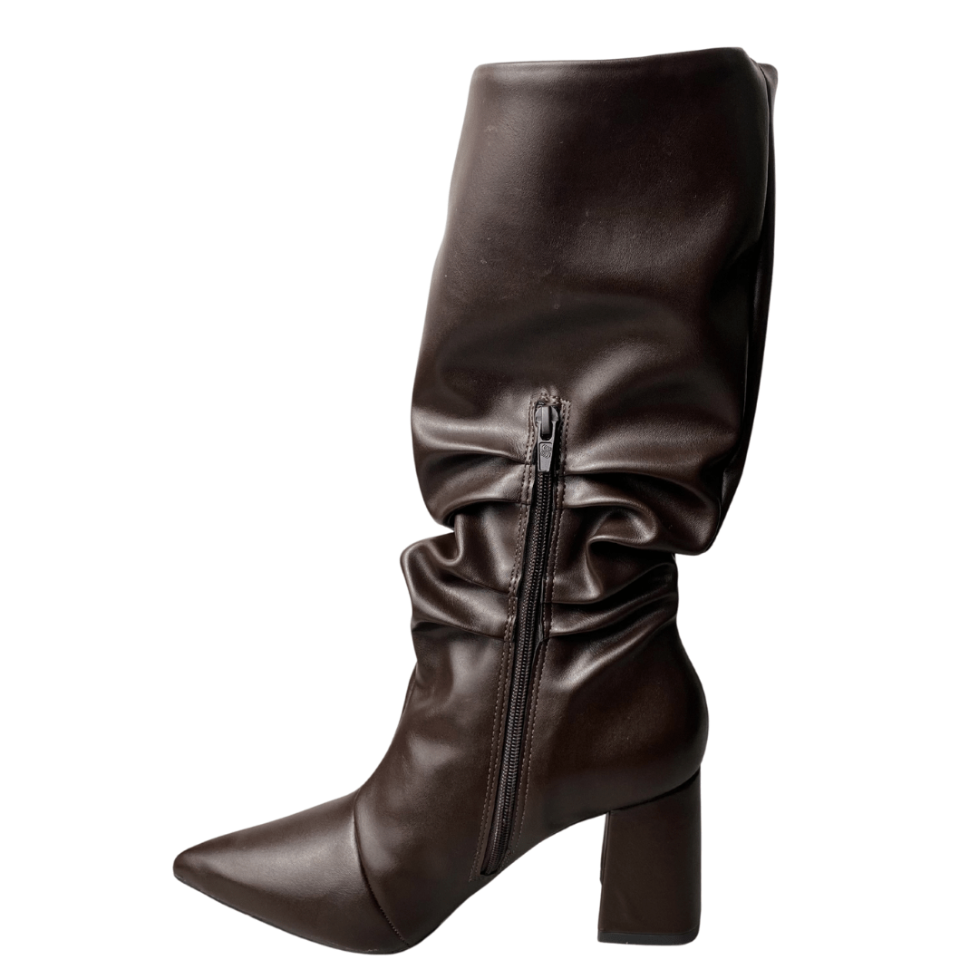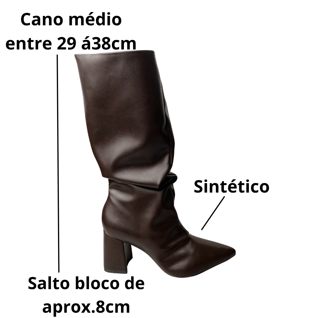 Efeito Slouchy Moderno: O leve franzido no tornozelo adiciona textura e um toque fashionista, permitindo que a bota se ajuste com charme à perna.