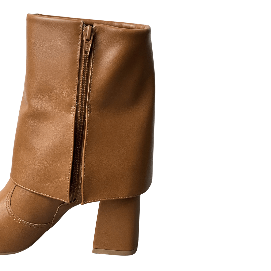 A Bota Offline em caramel é a definição de sofisticação com um toque contemporâneo. Seu design exclusivo com cano sobreposto (estilo slouchy estruturado) e bico fino cria um visual imponente e fashionista. É o calçado perfeito para a mulher que deseja transitar do trabalho para um evento social com confiança, estilo e o conforto do salto bloco.