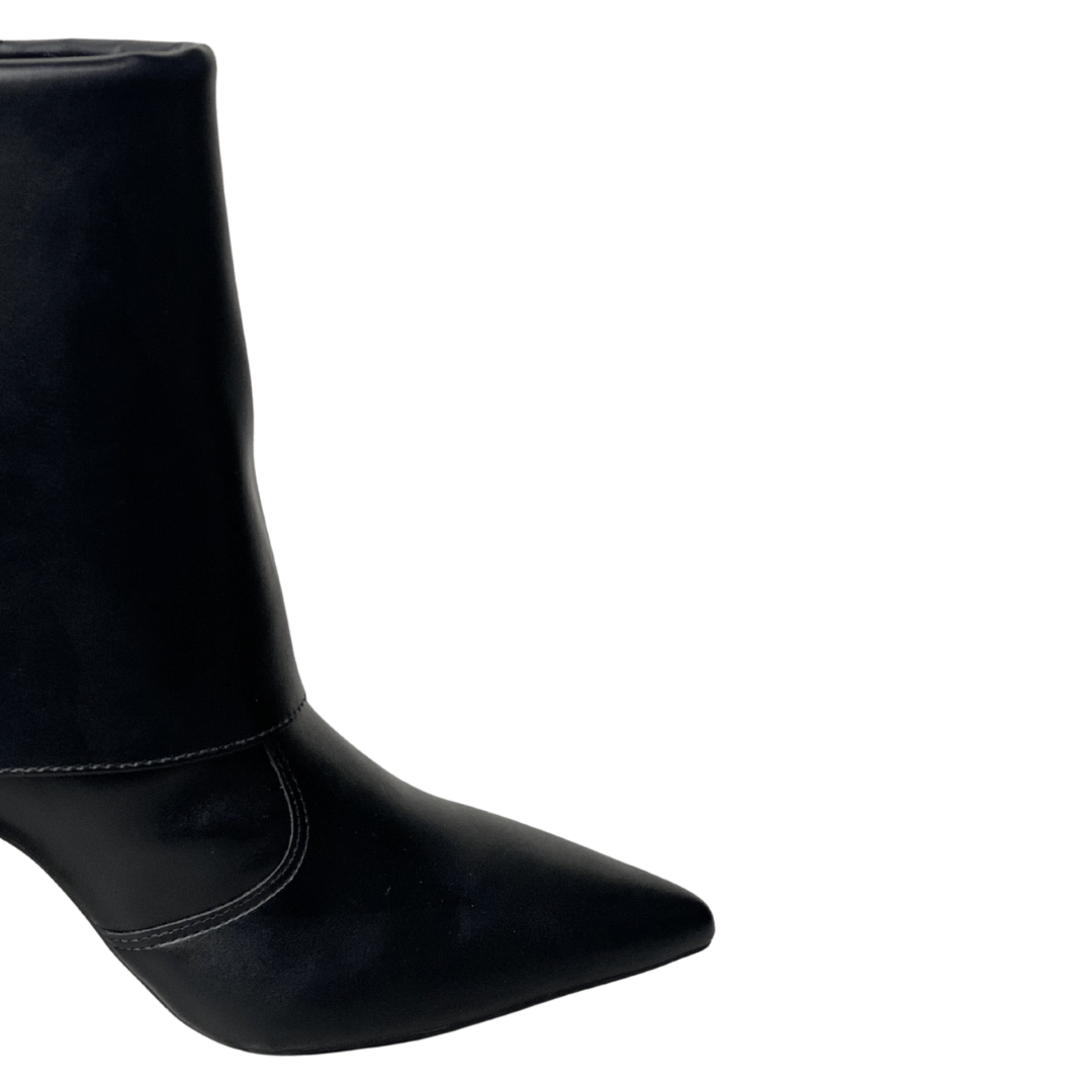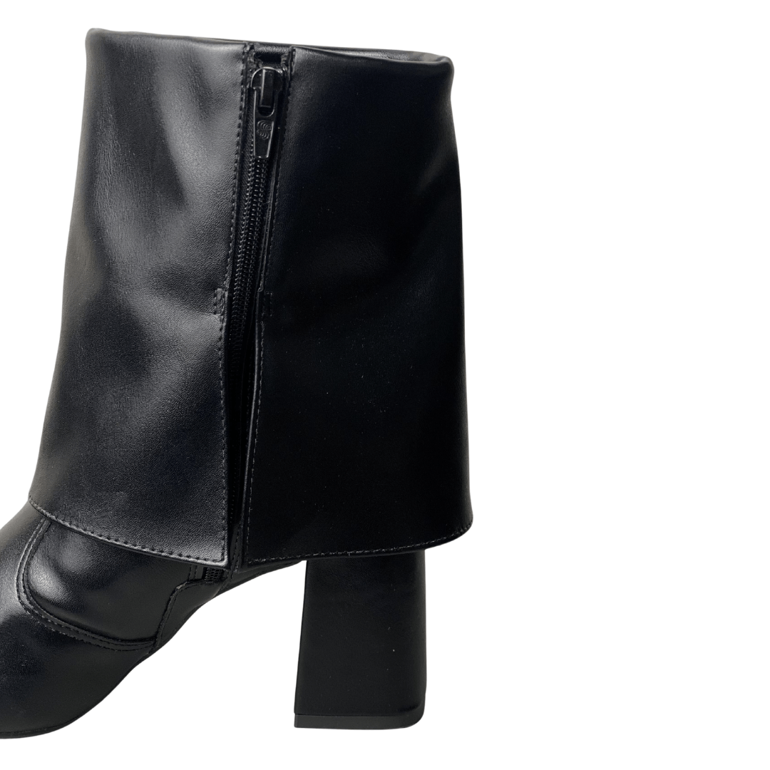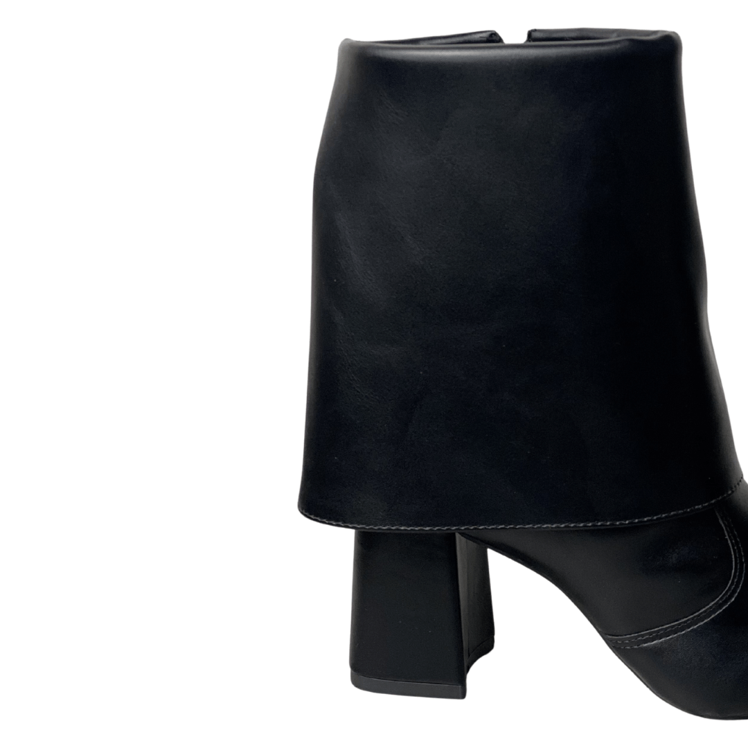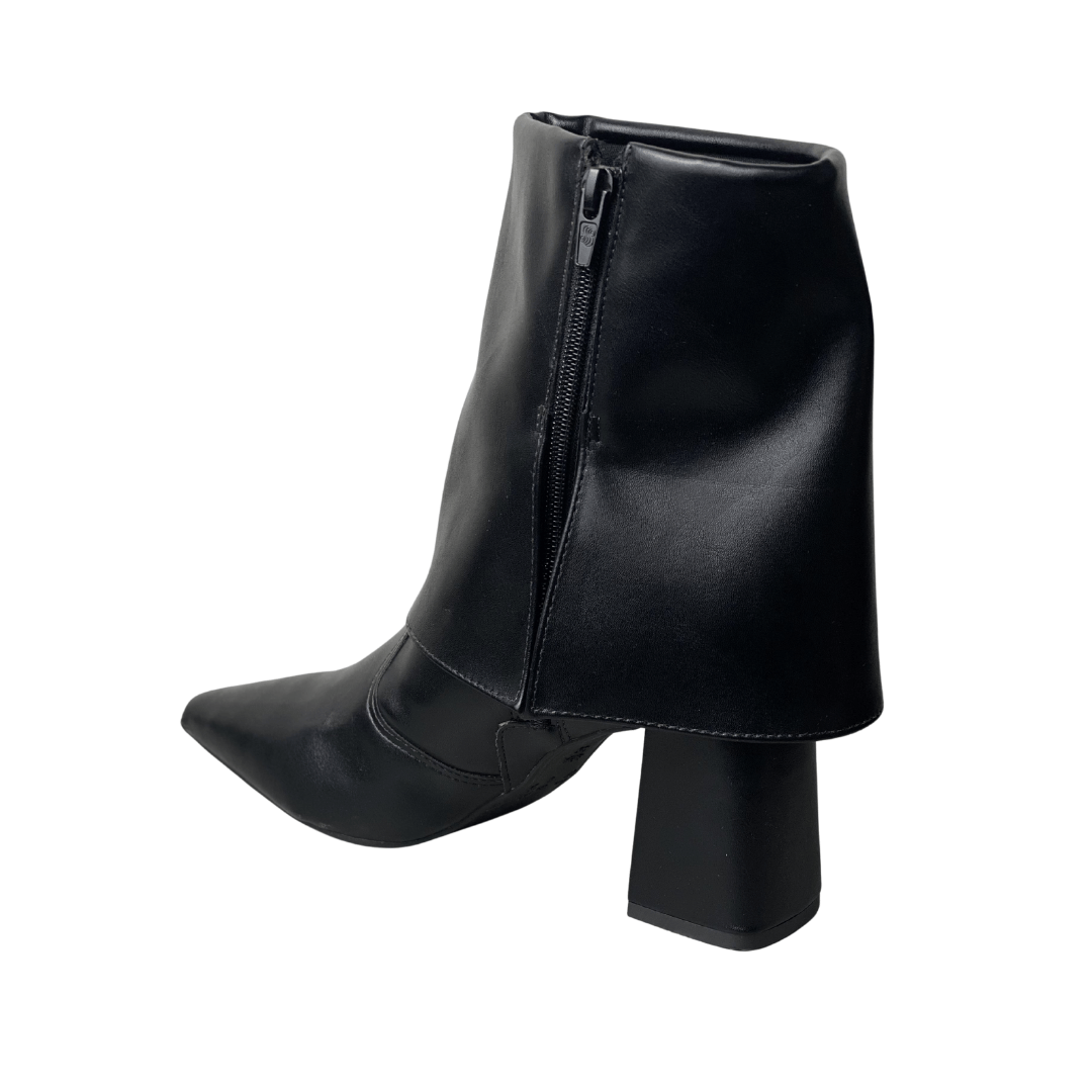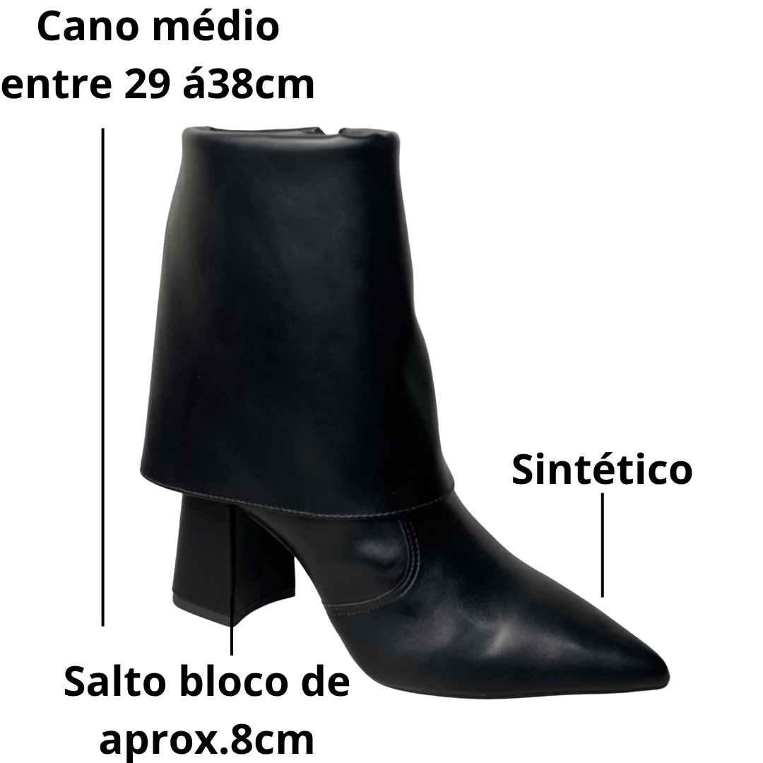 A Bota Offline em preto é a definição de sofisticação com um toque contemporâneo. Seu design exclusivo com cano sobreposto (estilo slouchy estruturado) e bico fino cria um visual imponente e fashionista. É o calçado perfeito para a mulher que deseja transitar do trabalho para um evento social com confiança, estilo e o conforto do salto bloco.