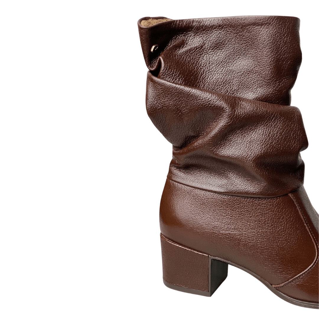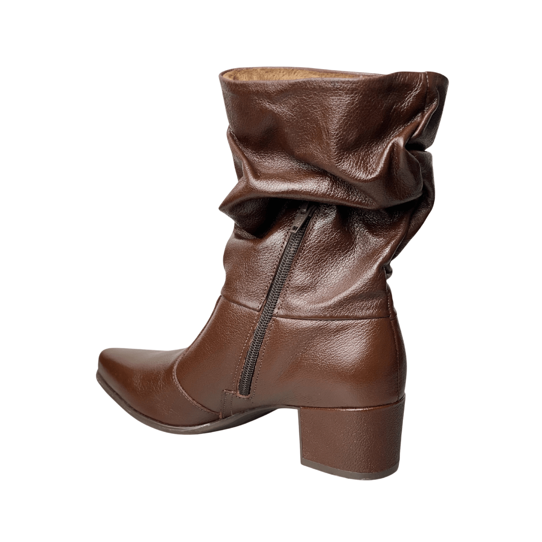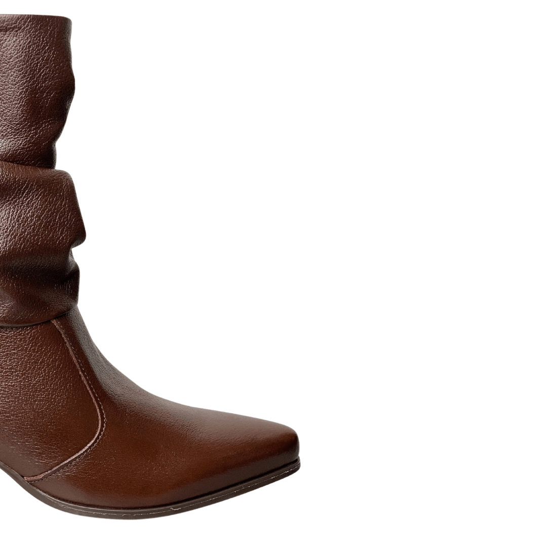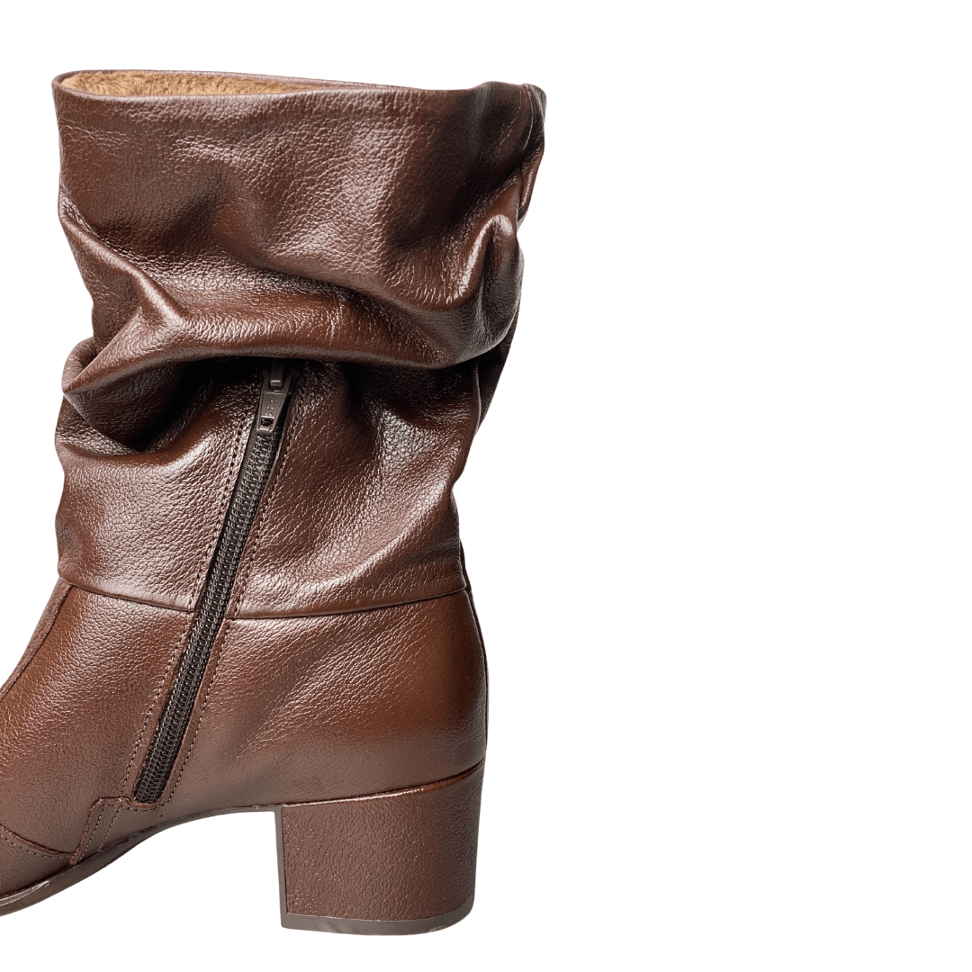 A parte franzida incomoda no tornozelo? De forma alguma! O couro é selecionado pela sua maleabilidade, garantindo que o drapeado seja apenas estético e não interfira no conforto.
