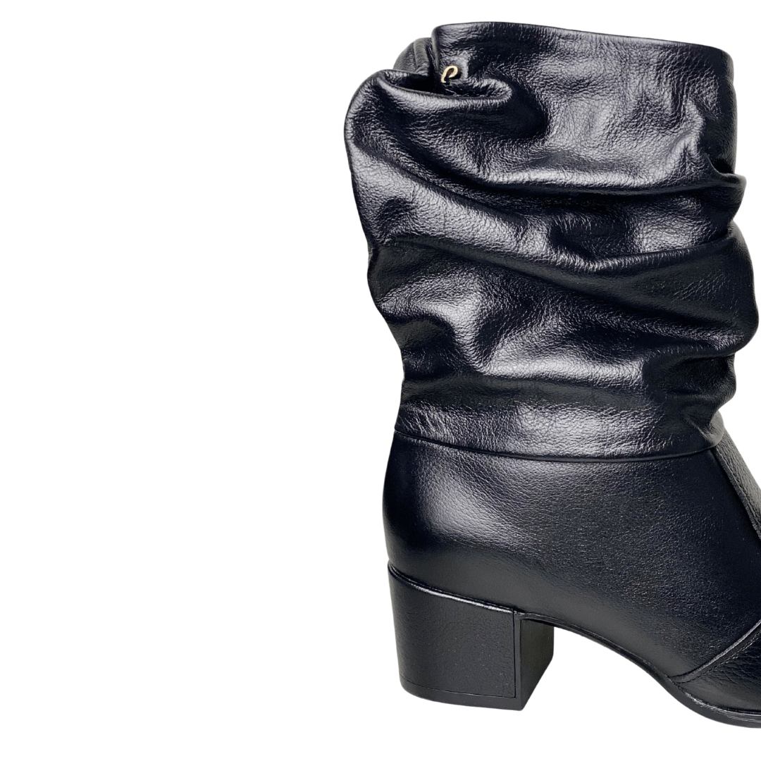A parte franzida incomoda no tornozelo? De forma alguma! O couro é selecionado pela sua maleabilidade, garantindo que o drapeado seja apenas estético e não interfira no conforto.