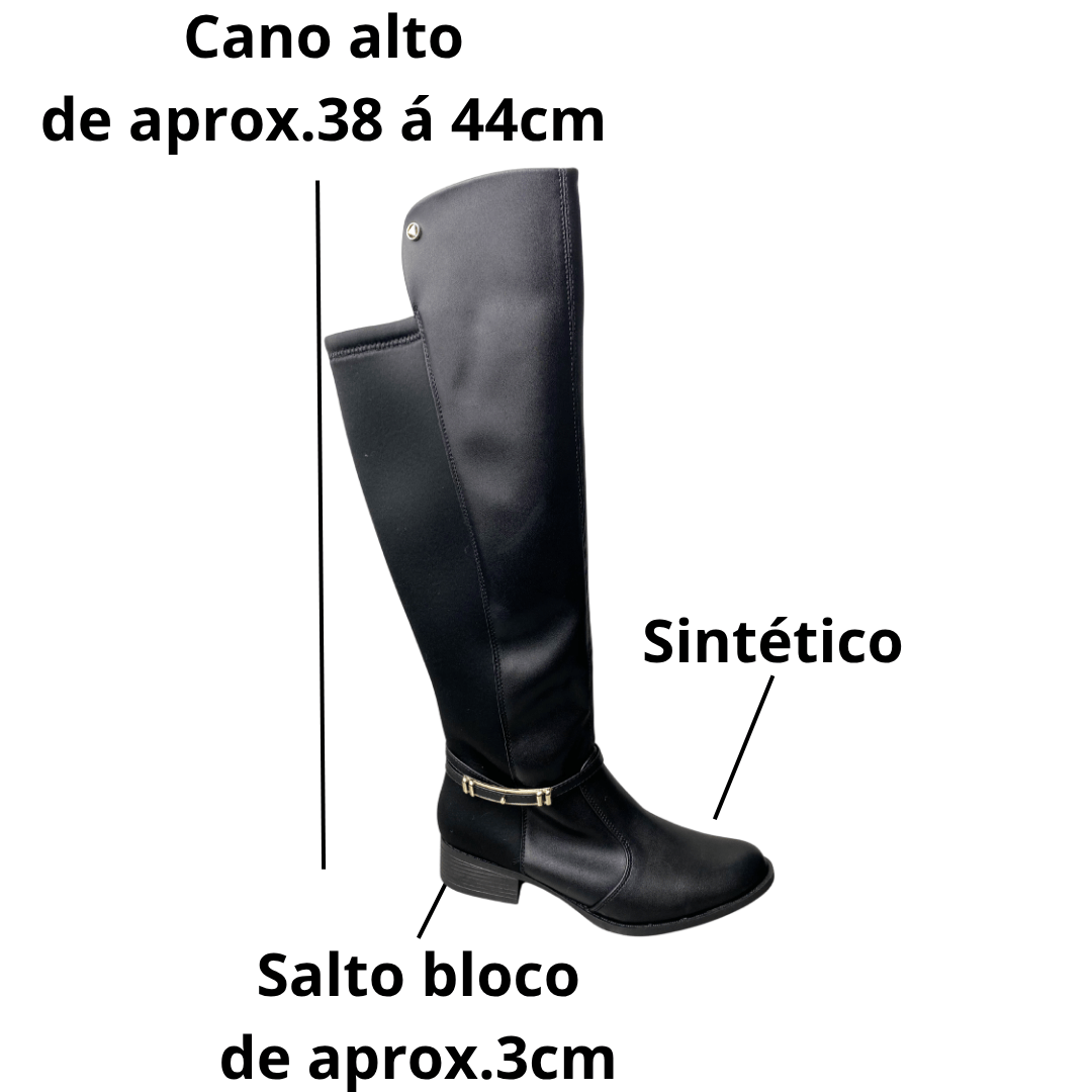 Ajuste Perfeito: Conta com um painel traseiro em material flexível (neoprene/elástico), que permite que a bota se molde perfeitamente ao formato da sua perna, garantindo conforto sem apertar.