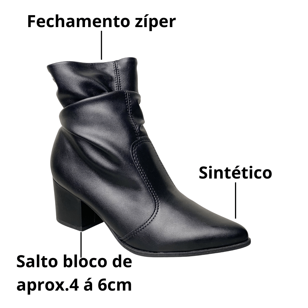 Bota Via Uno Feminina Preto Salto Bloco