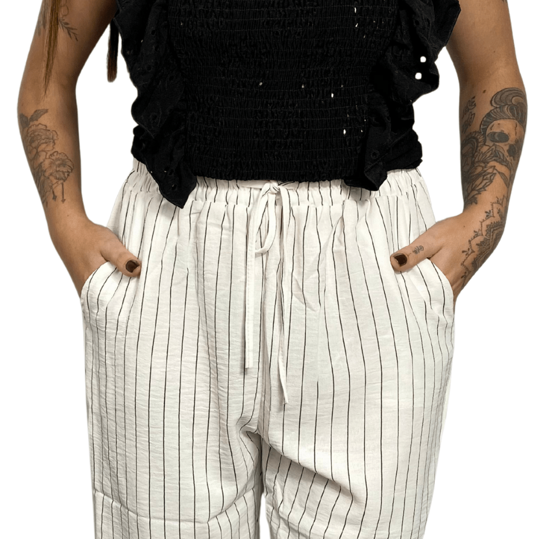 Estampa listrada que alonga visualmente o corpo e traz elegância ao look.